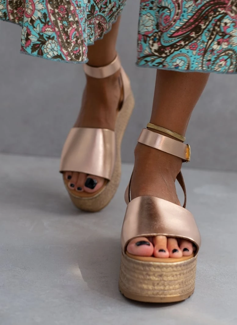 Flatforms δερμάτινες με φαρδιά φάσα Estil – Χαλκός