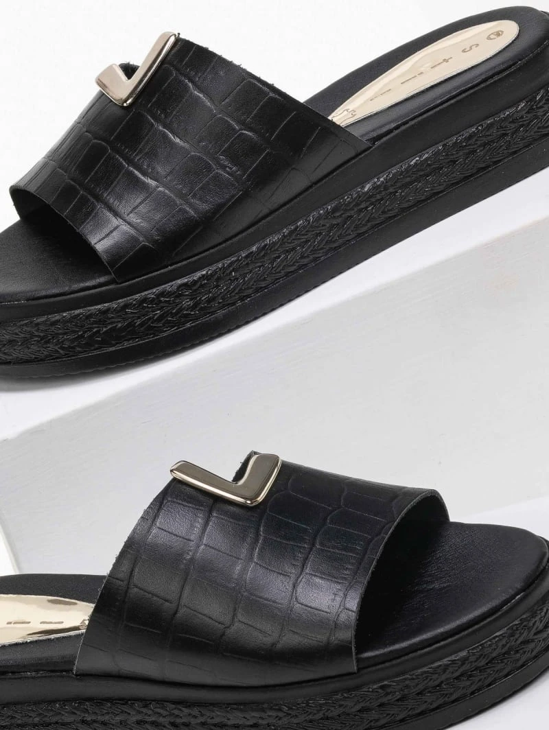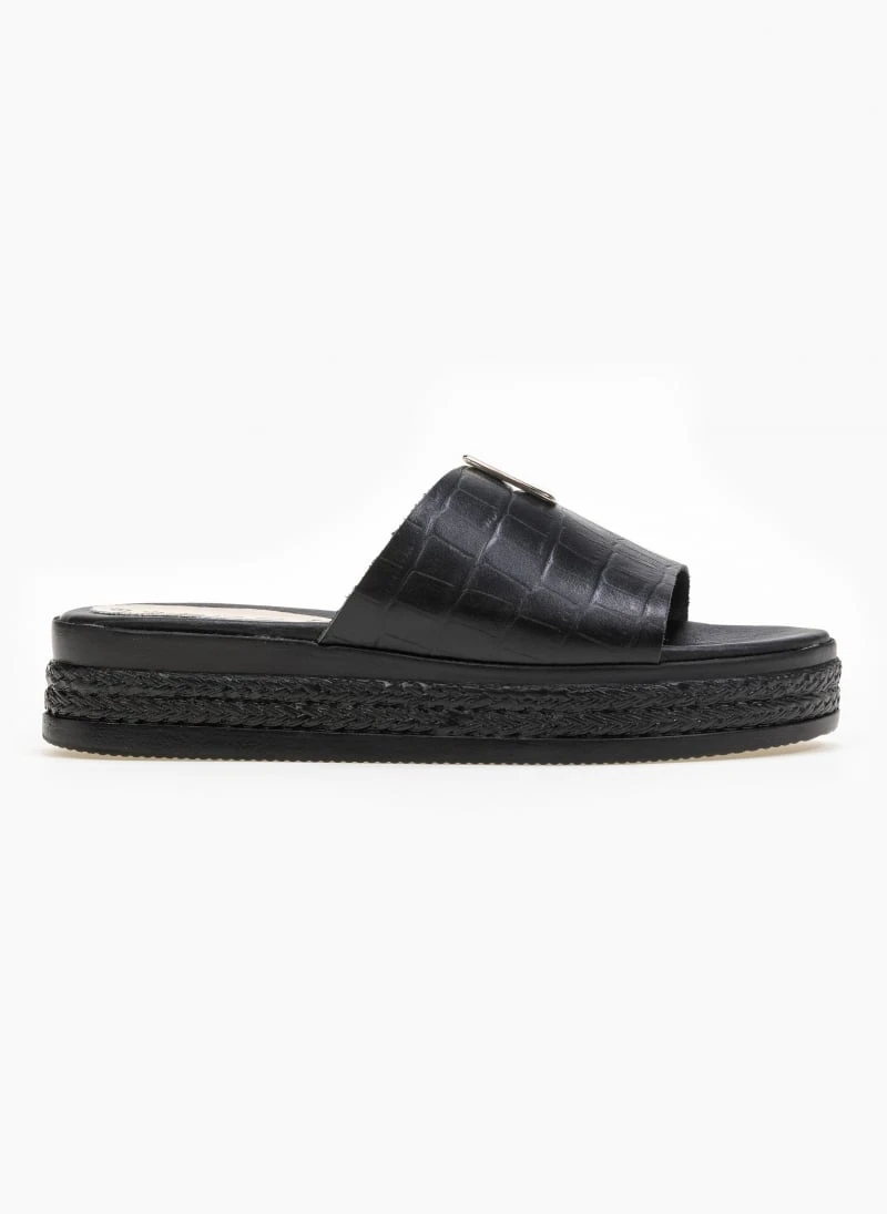 Flatforms κροκό με άνισο τελείωμα Estil – Μαύρο