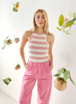 The Fashion Project Μπλούζα ριμπ αμάνικη με ρίγες – Ροζ