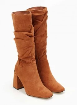 The Fashion Project Μπότες Suede με λεπτό τακούνι – Κάμελ