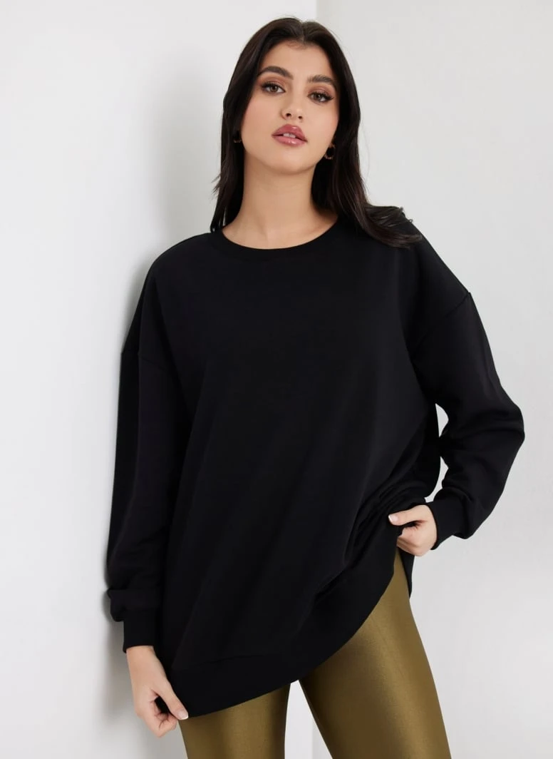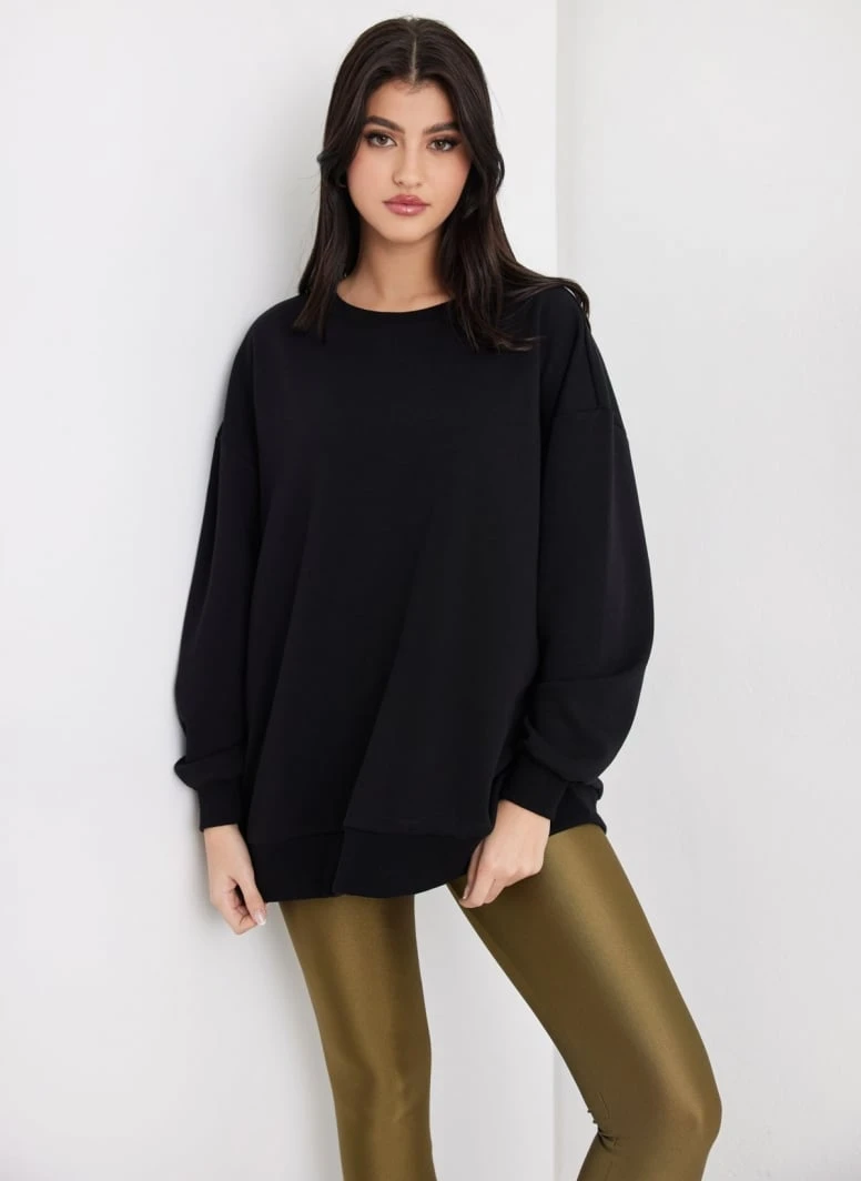 Noobass Φούτερ Oversized με ανοιχτή λαιμόκοψη – Μαύρο