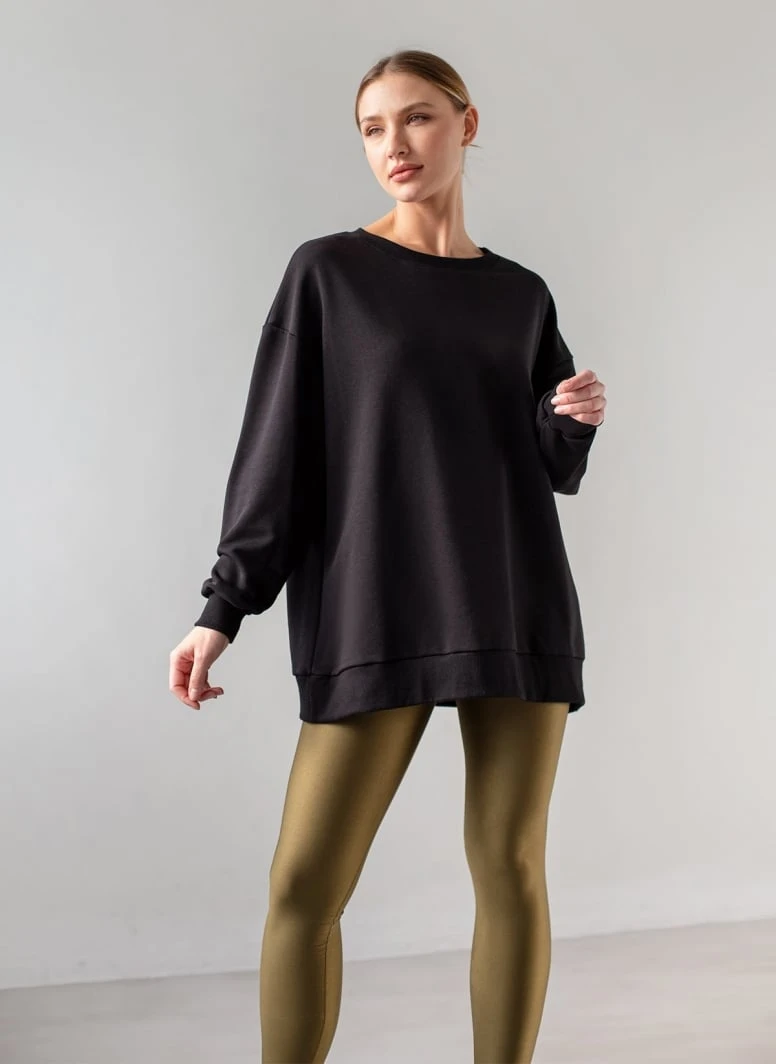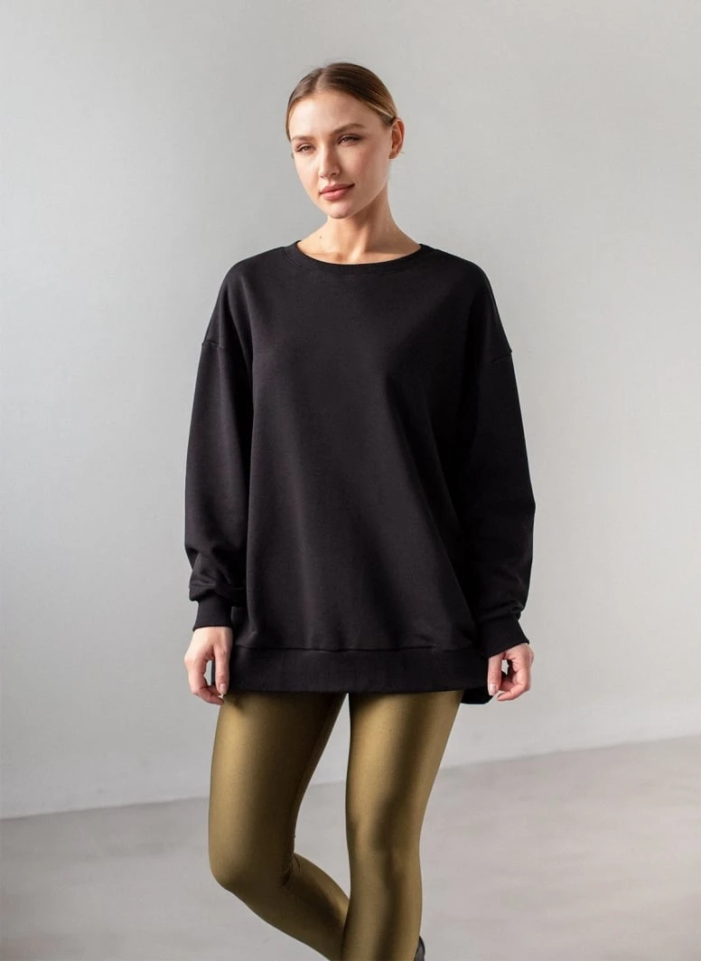 Oversized φούτερ με ίσια ανοιχτή λαιμόκοψη. Έχει λάστιχο στα μανίκια και το τελείωμα. Made in Europe.