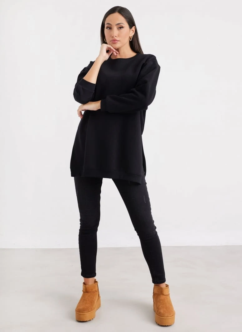 Noobass Φούτερ Oversized με ανοίγματα – Μαύρο