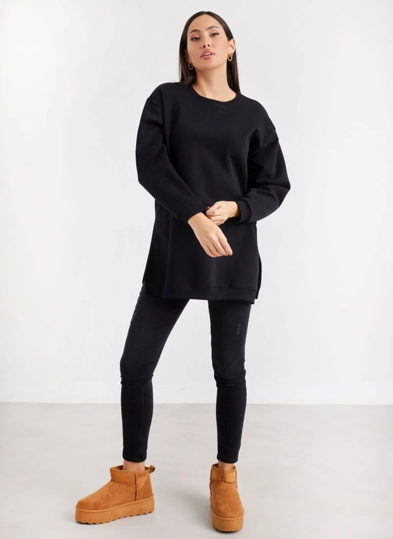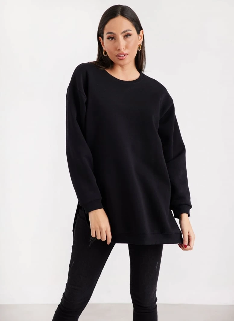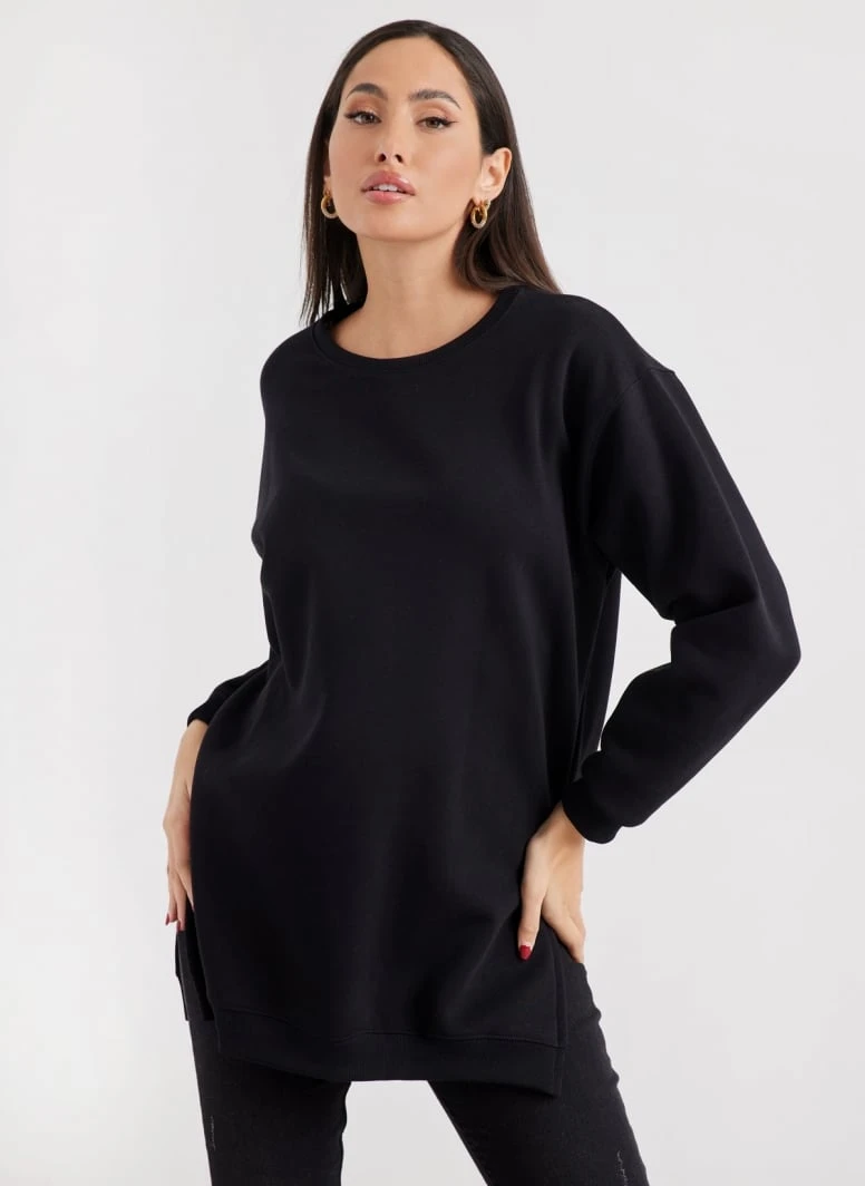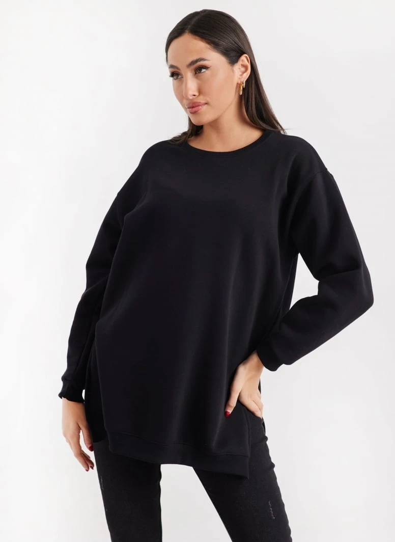 Oversized μπλούζα φούτερ με στρογγυλή λαιμόκοψη. Έχει ανοίγματα στα πλαϊνά. Made in Europe.