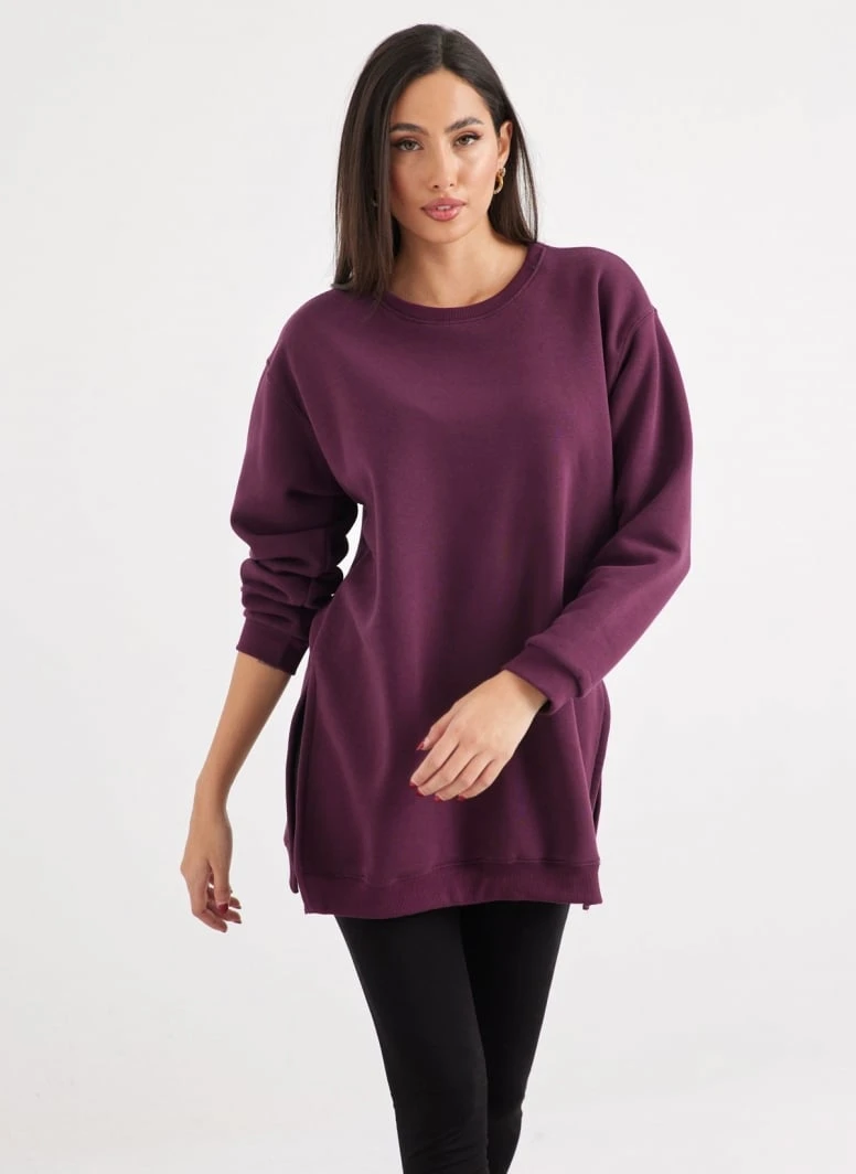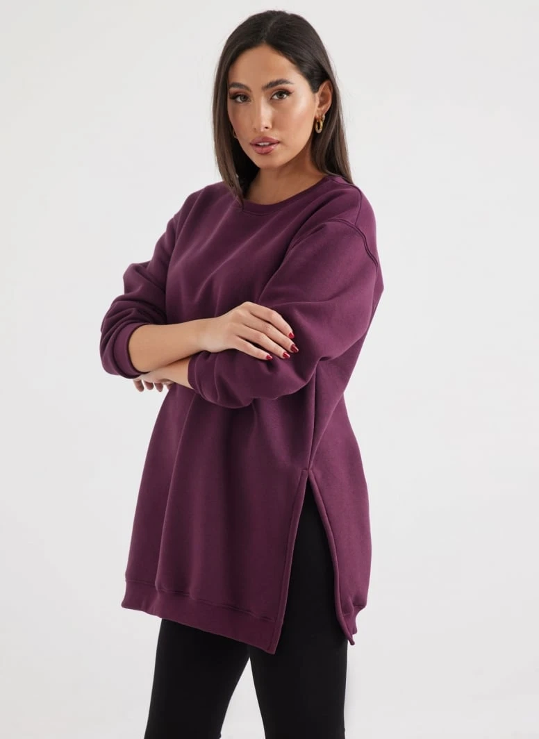 Oversized μπλούζα φούτερ με στρογγυλή λαιμόκοψη. Έχει ανοίγματα στα πλαϊνά. Made in Europe.