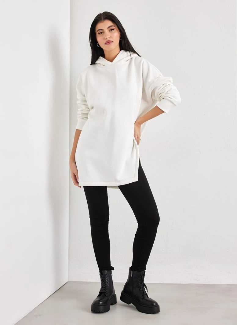 Oversized φούτερ με κουκούλα σε ίσια γραμμή. Έχει σχέδιο με άνοιγμα στο πλάι. Made in Europe.