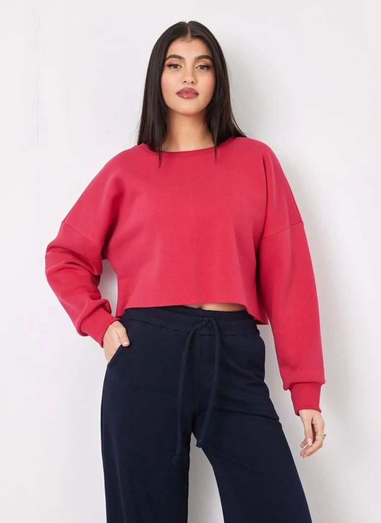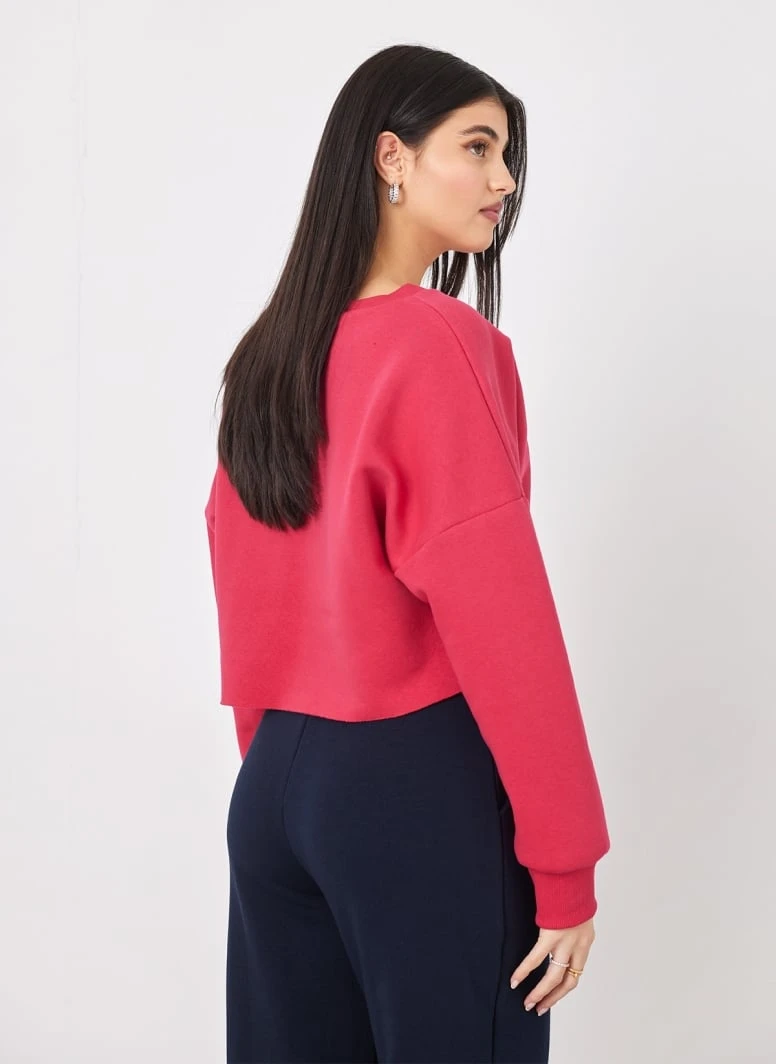 Cropped μπλούζα φούτερ με στρογγυλή λαιμόκοψη. Made in Europe.