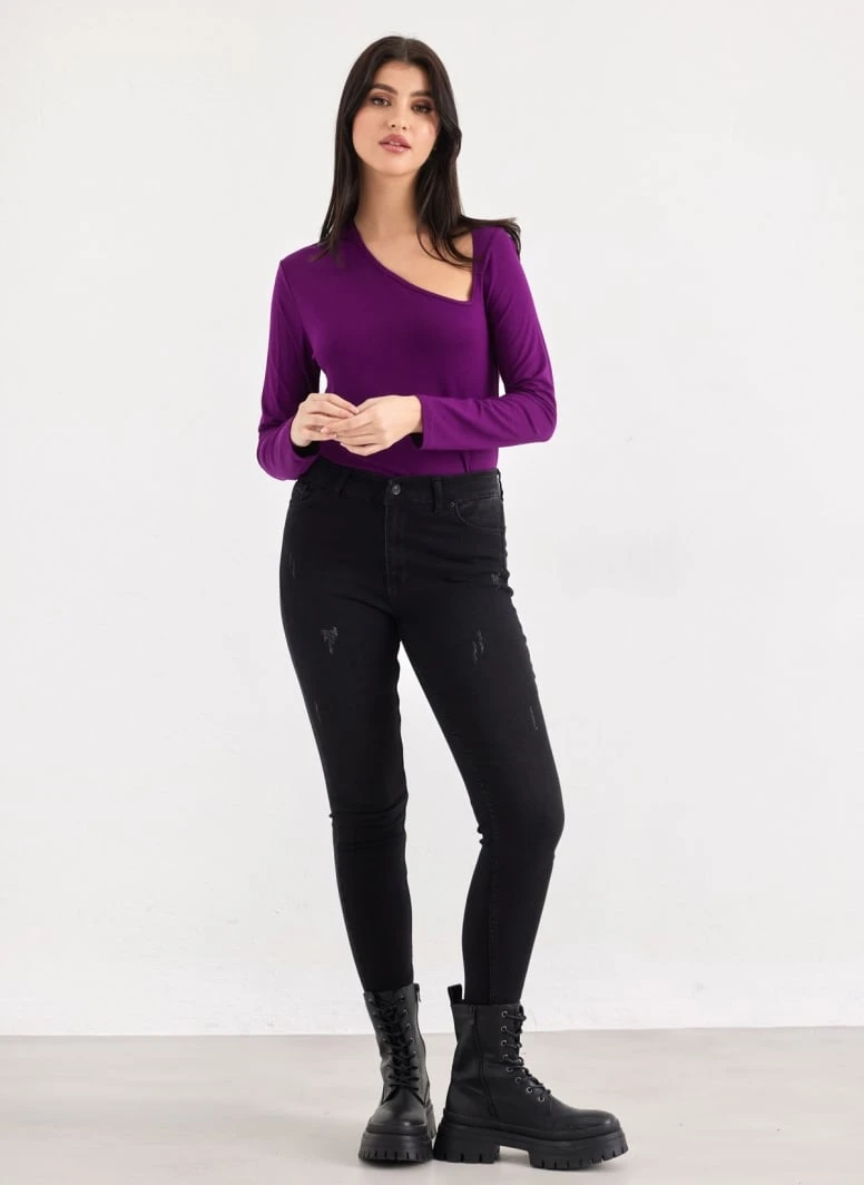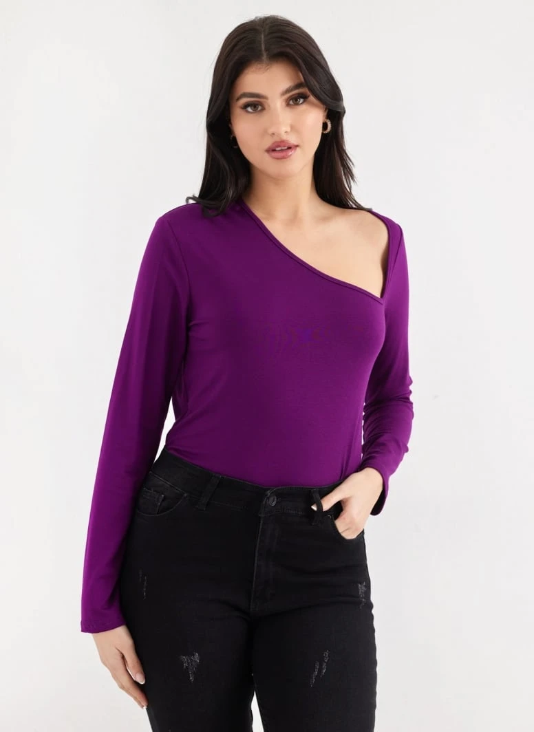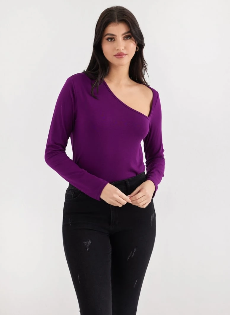 Noobass Μπλούζα με ασύμμετρη λαιμόκοψη – Μωβ