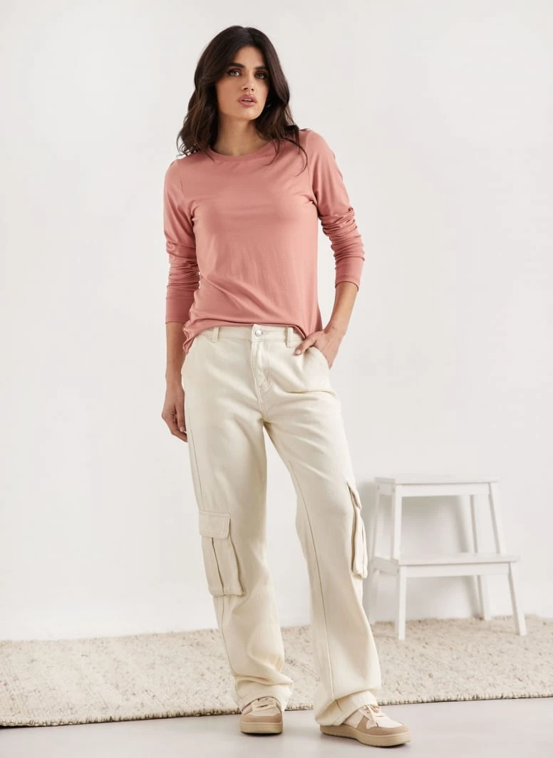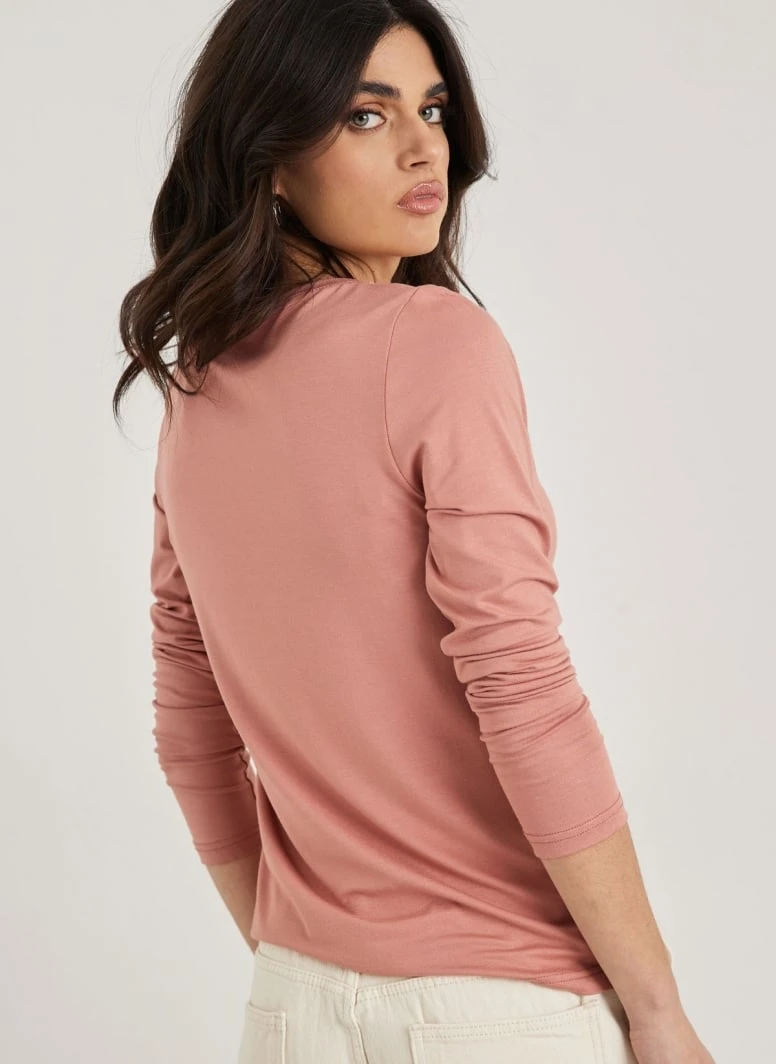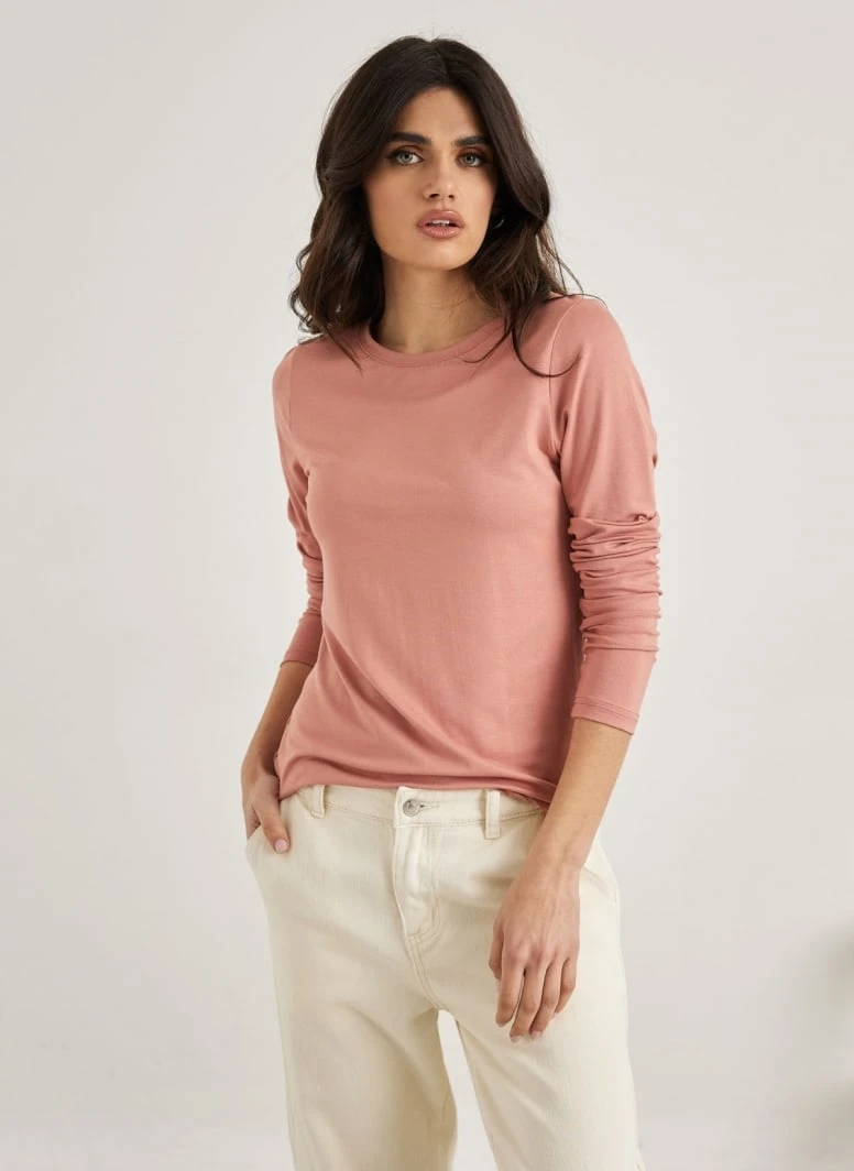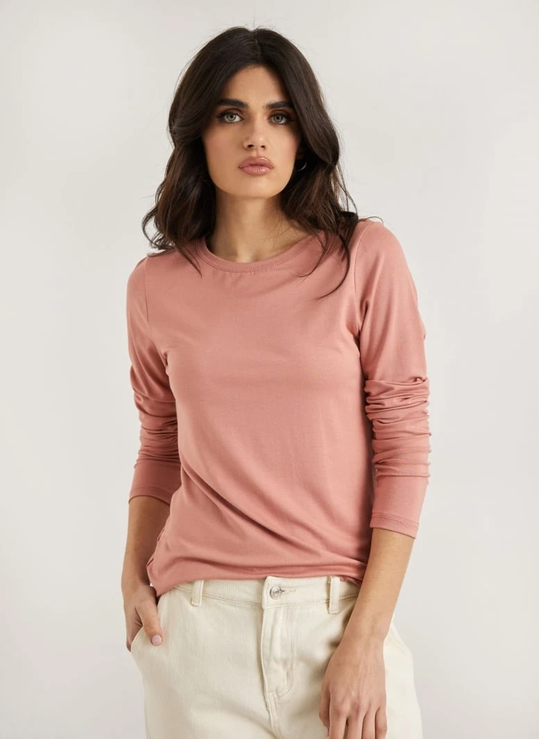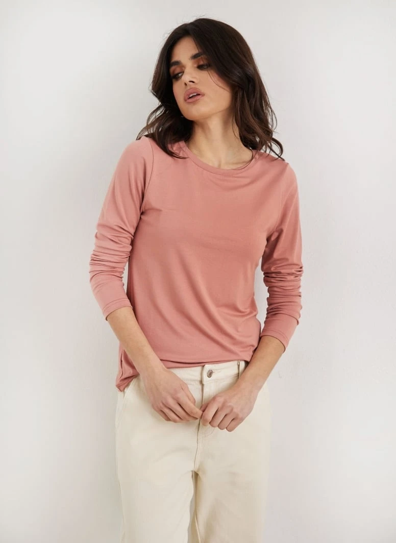 Μπλούζα μακρυμάνικη μονόχρωμη. Έχει στρογγγυλή λαιμόκοψη. Ίσια γραμμή.