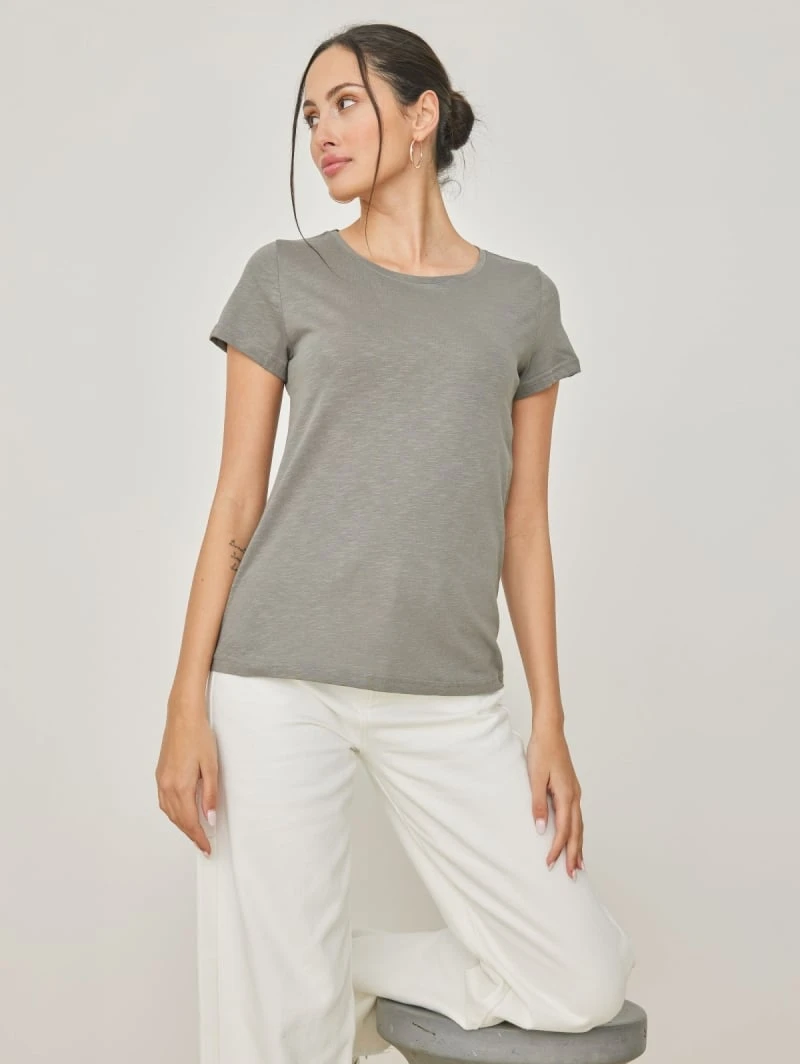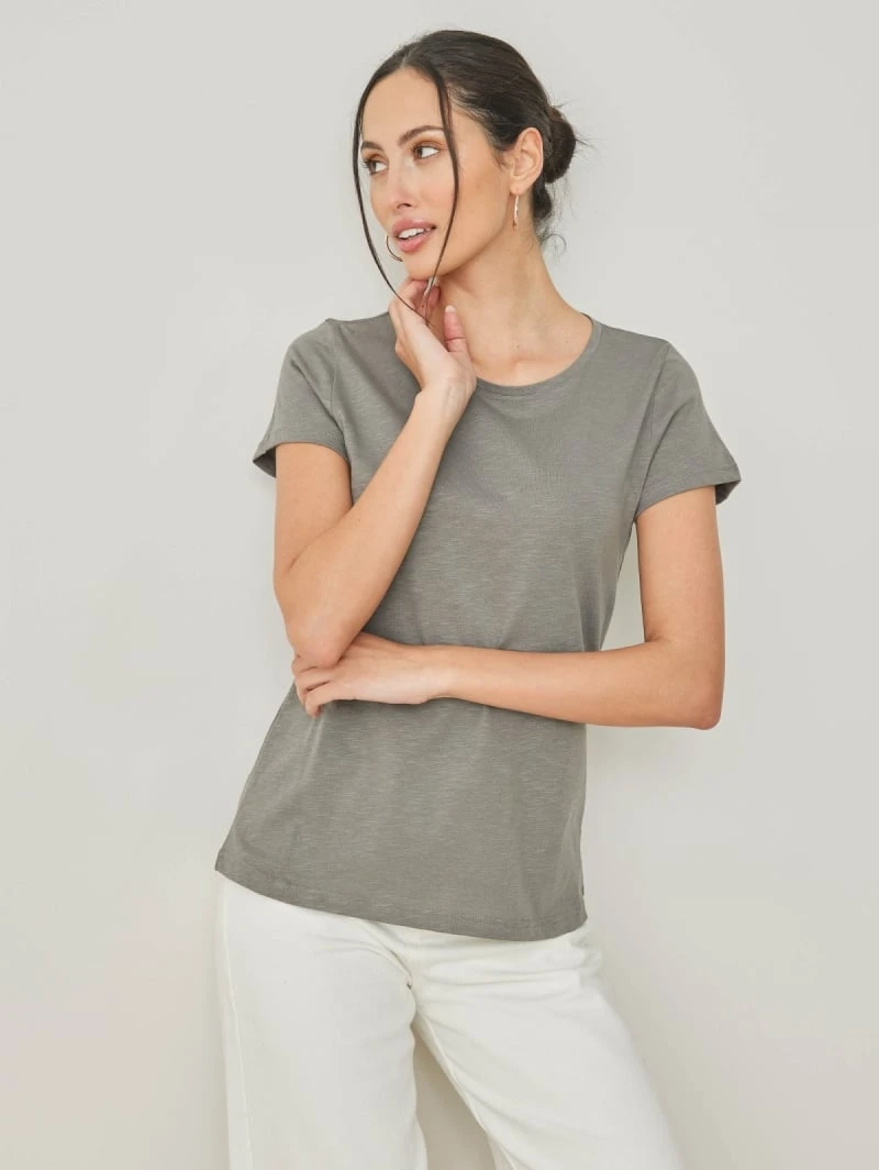 Βαμβακερό μονόχρωμο t-shirt με στρογγυλή λαιμόκοψη.