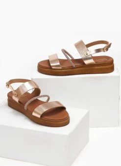 Estil δερμάτινα πέδιλα. Έχουν χοντρό τακούνι και χιαστί φάσα. Δένουν με λουράκι στο ύψος του αστραγάλου. Μαλακός πάτος με ενίσχυση. Ελληνικής κατασκευής,χειροποίητα.