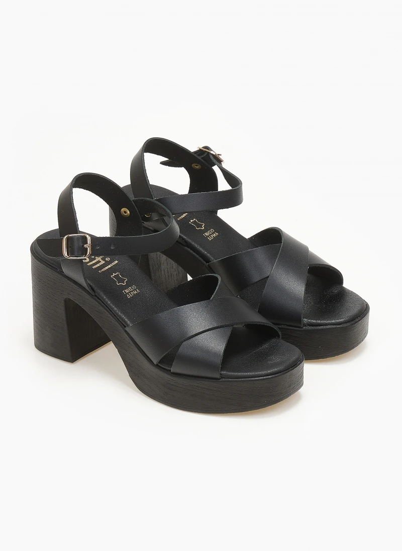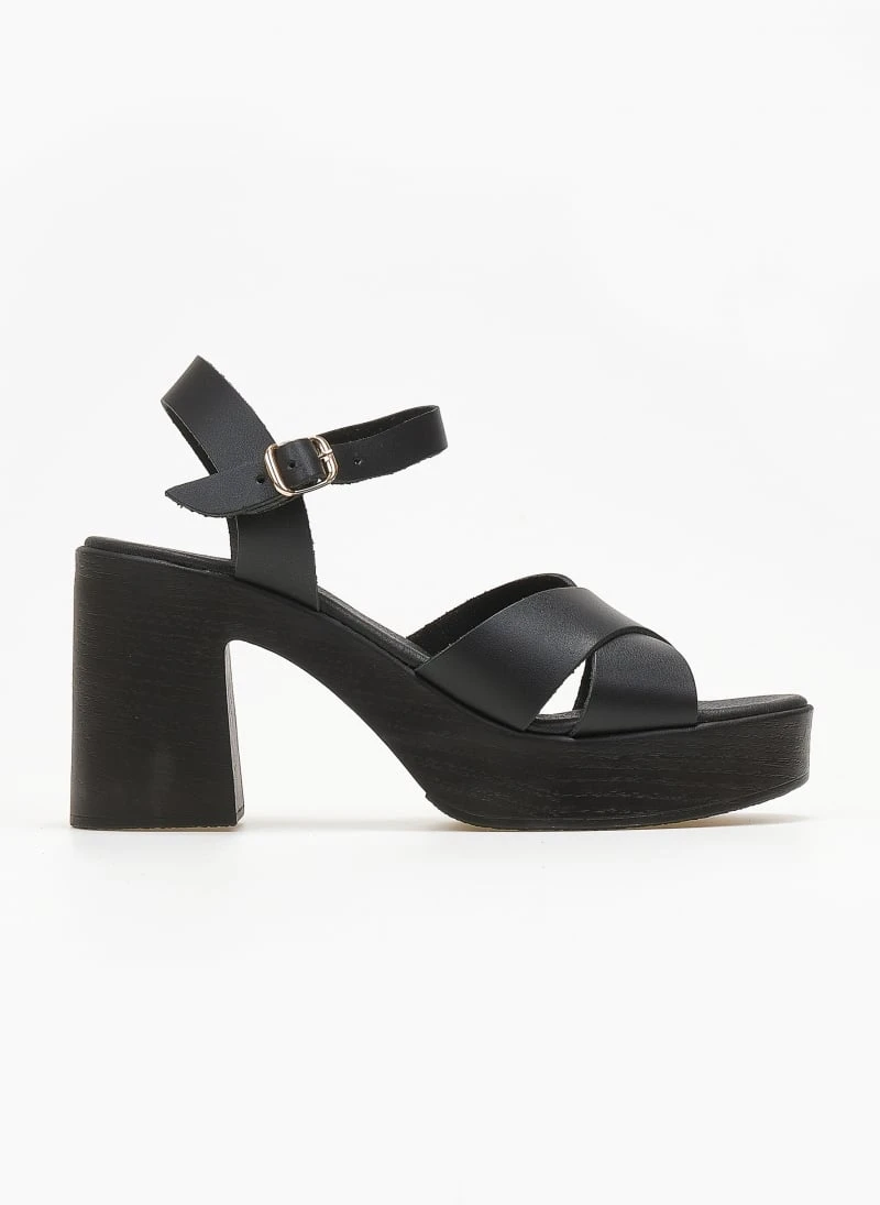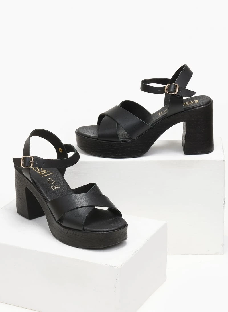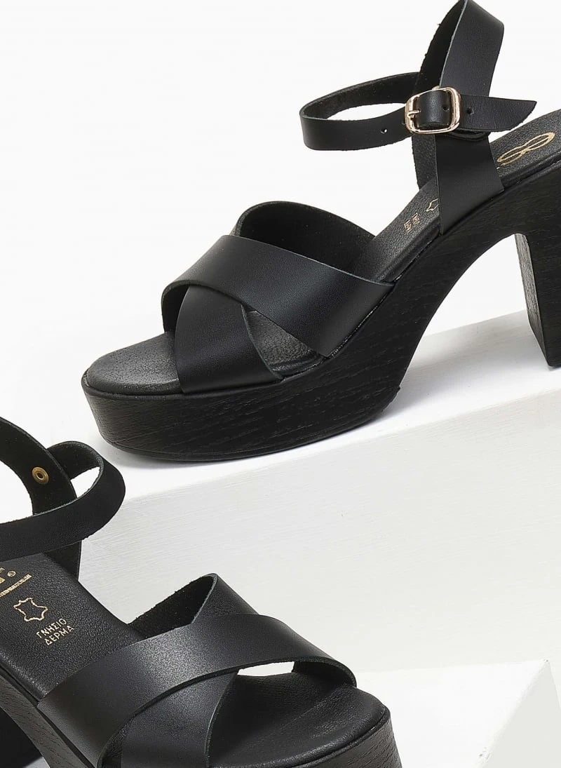 Πέδιλα δερμάτινα με χιαστί φάσα Estil – Μαύρο