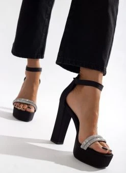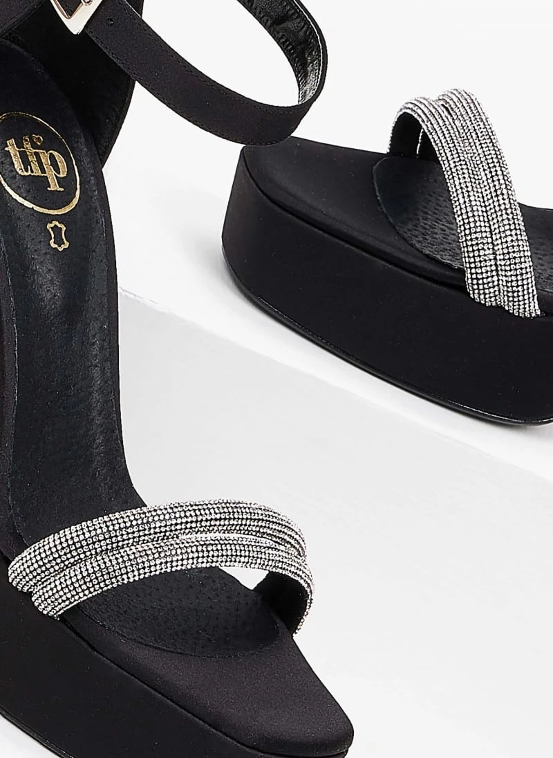 Πέδιλα με φιάπα και στρας υφασμάτινα Tfp – Μαύρο