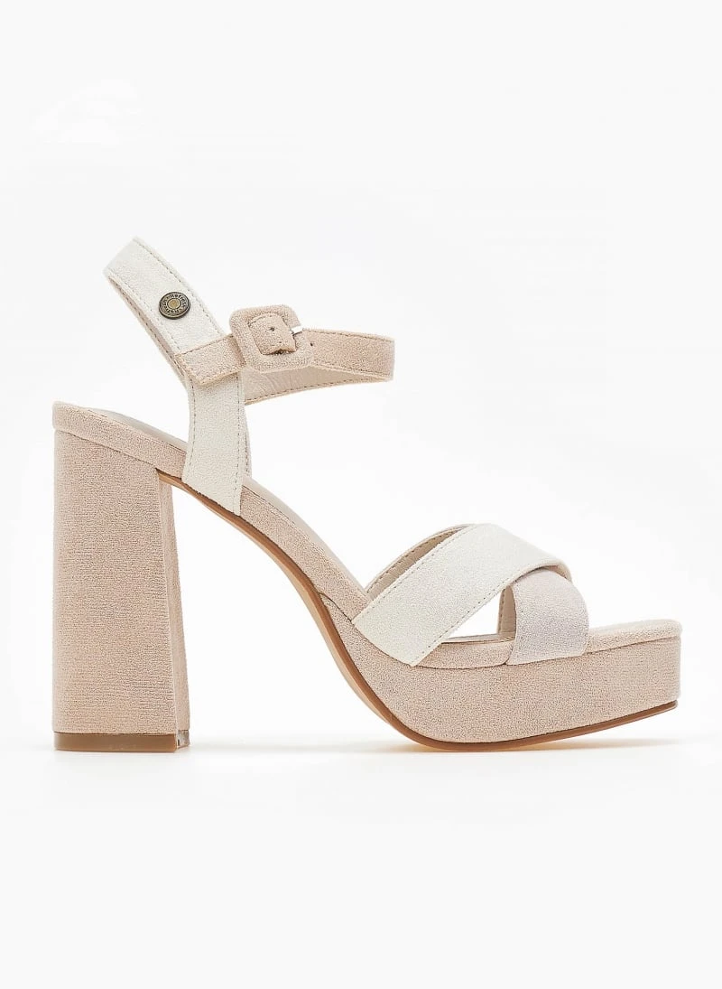 Πέδιλα suede με φιάπα και ψηλό χοντρό τακούνι. Έχουν ανοιχτή φτέρνα και μαλακό πάτο. Δένουν με λουράκια στο ύψος του αστραγάλου. Approved vegan.