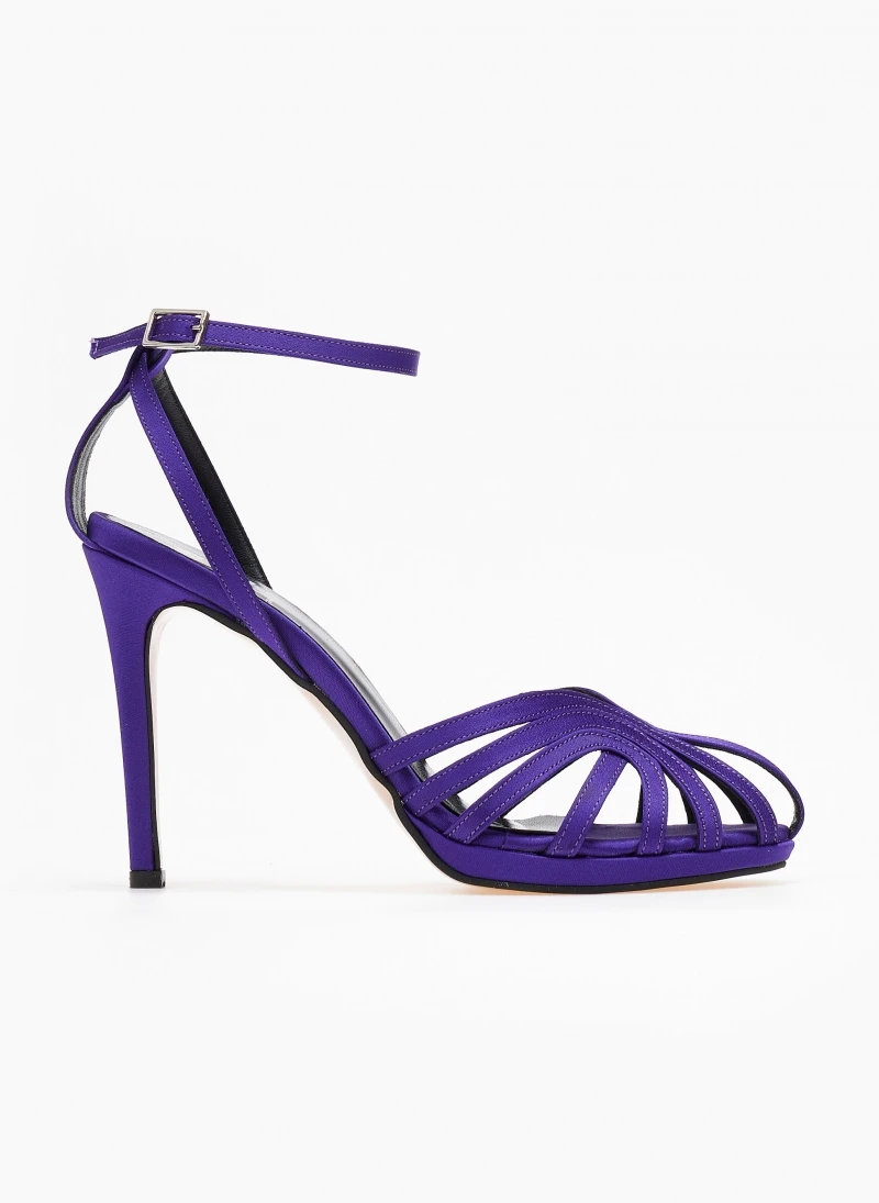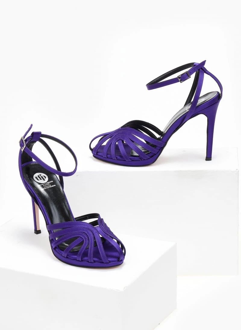 Πέδιλα σατέν tfp με ρετρό σχέδιο. Δένουν με μπαρέτα στο ύψος του αστραγάλου. Έχουν λεπτή φιάπα. Ελληνικής κατασκευής