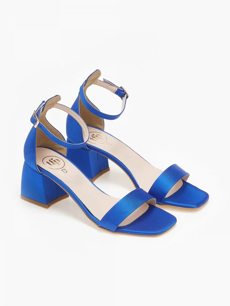 Πέδιλα tfp με χαμηλό τετράγωνο τακούνι. Έχουν δερμάτινο πάτο. Δένουν με μπαρέτα στο ύψος του αστραγάλου. Καρέ γραμμή. Ελληνικής κατασκευής.