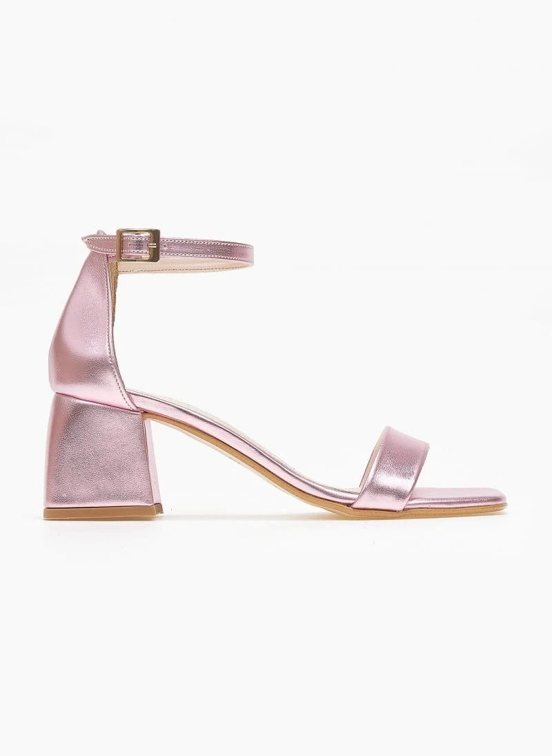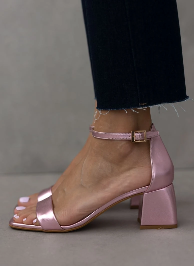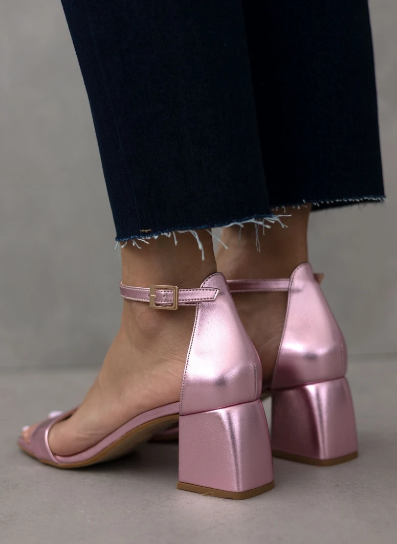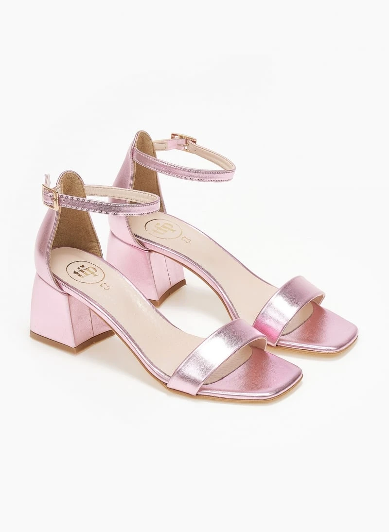 Πέδιλα σε μεταλλικά χρώματα tfp. Έχουν κλειστή φτέρνα. Δένουν με μπαρέτα στο ύψος του αστραγάλου. Καρέ γραμμή. Δερμάτινος πάτος. Ελληνικής κατασκευής.