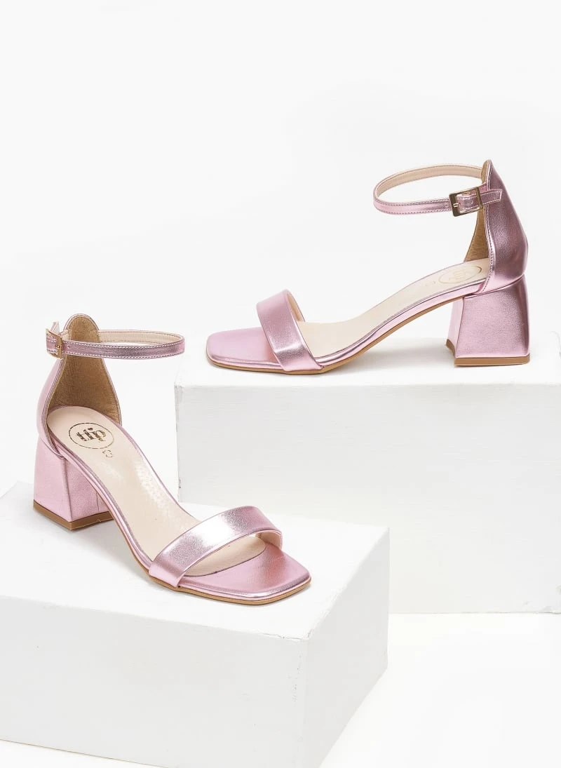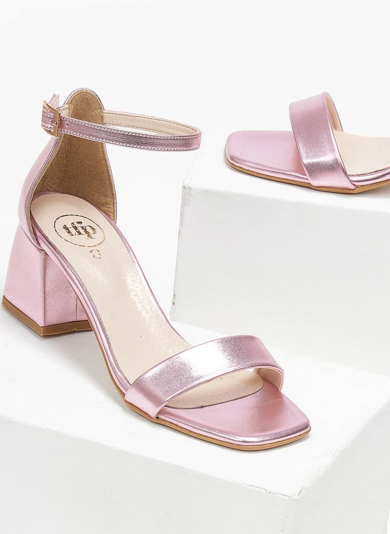 Πέδιλα με μπαρέτα σε μεταλλικά χρώματα Tfp – Ροζ