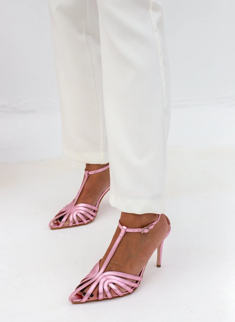 Πέδιλα με μπαρέτα σε μεταλλικά με ανοίγματα Tfp – Ροζ