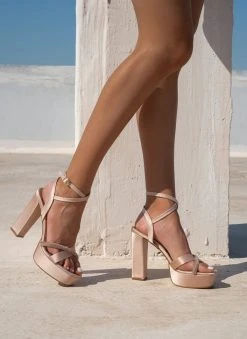 Πέδιλα σατέν TFP με χιαστί μπαρέτα – Nude