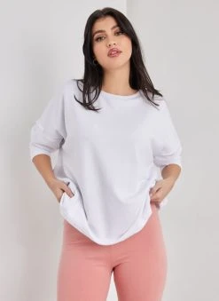 Noobass Φούτερ Oversized με ασύμμετρο τελείωμα – Λευκό
