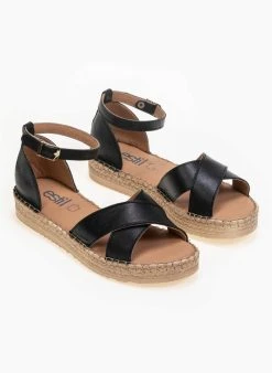 Flatforms δερμάτινα Crossover Iris Sandals – Μαύρο