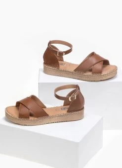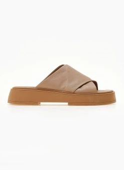 Flatforms δερμάτινα Crossover Iris Sandals – Μπεζ