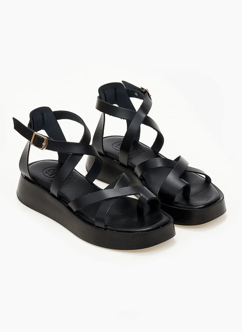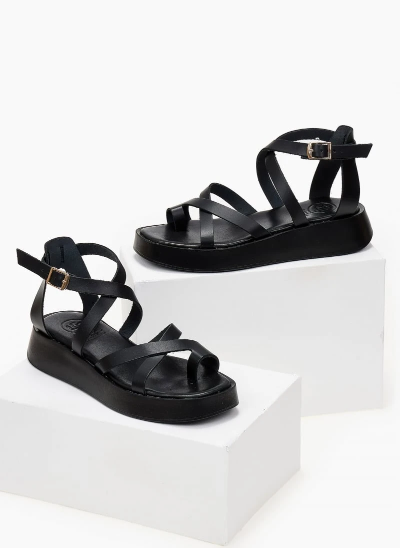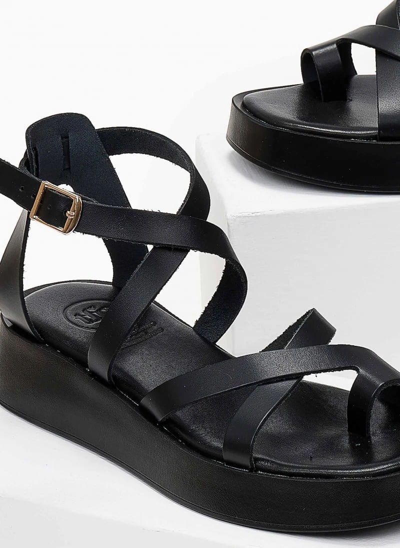 Σανδάλια δερμάτινα TFP με χιαστί δέσιμο – Μαύρο