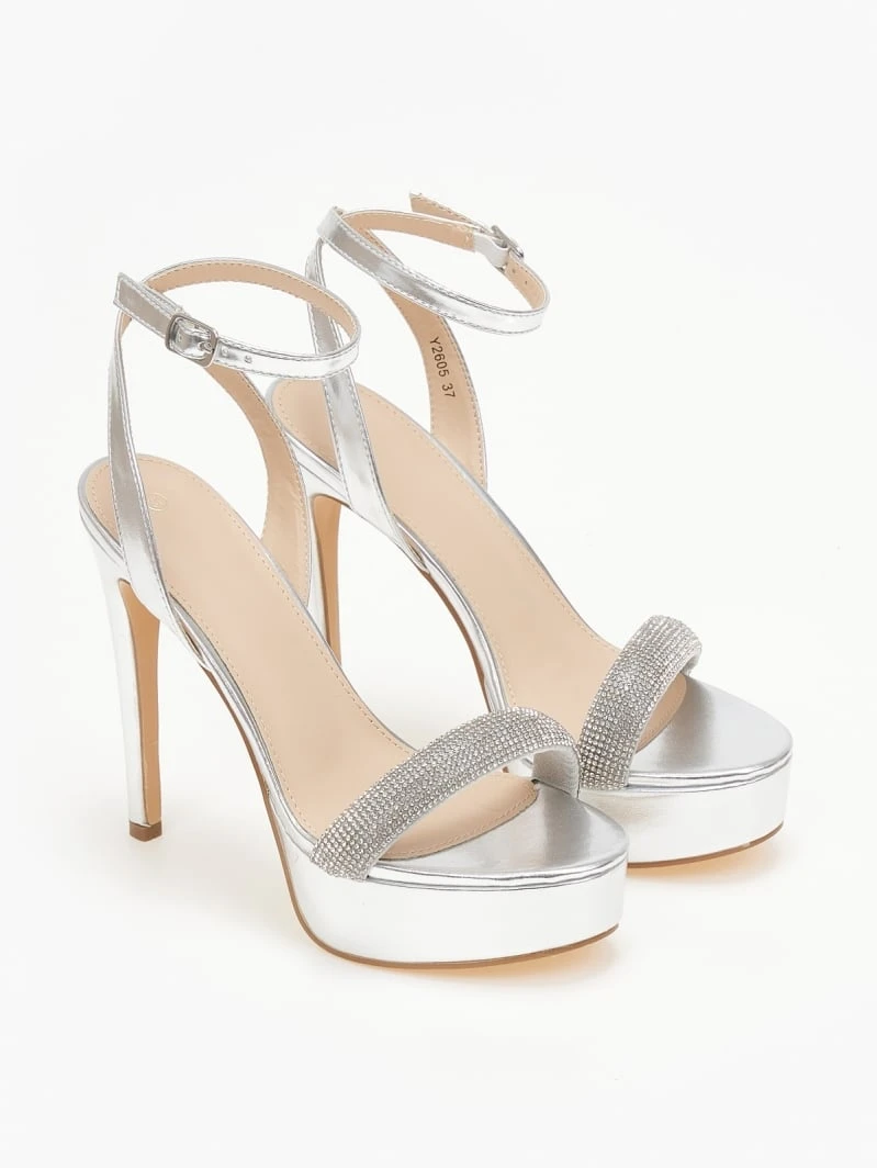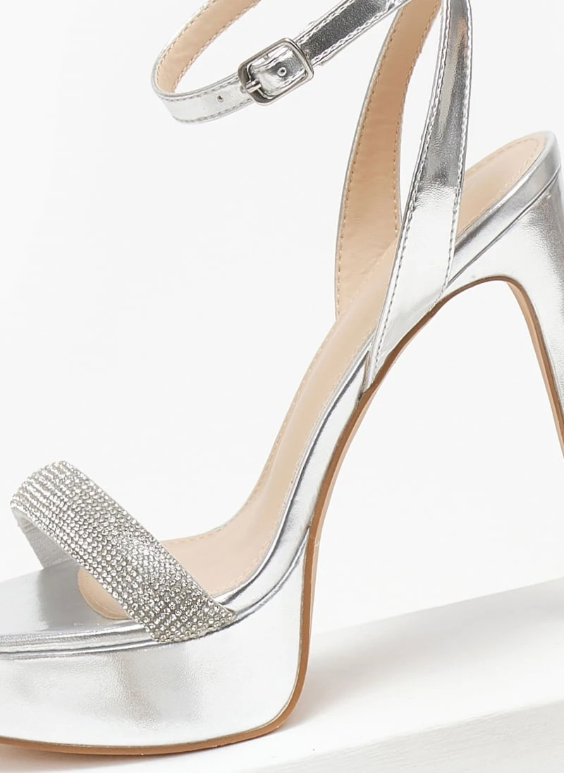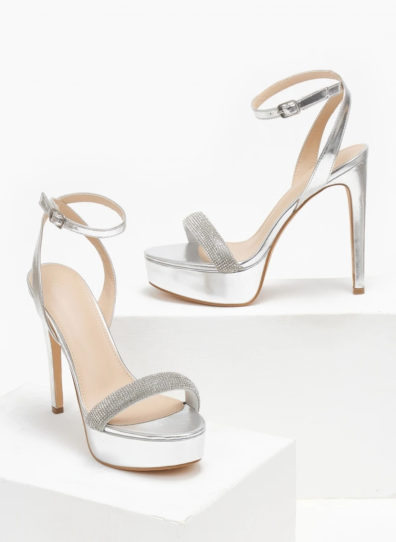 TFP Πέδιλα με στρας και μπαρέτα – Ασημί