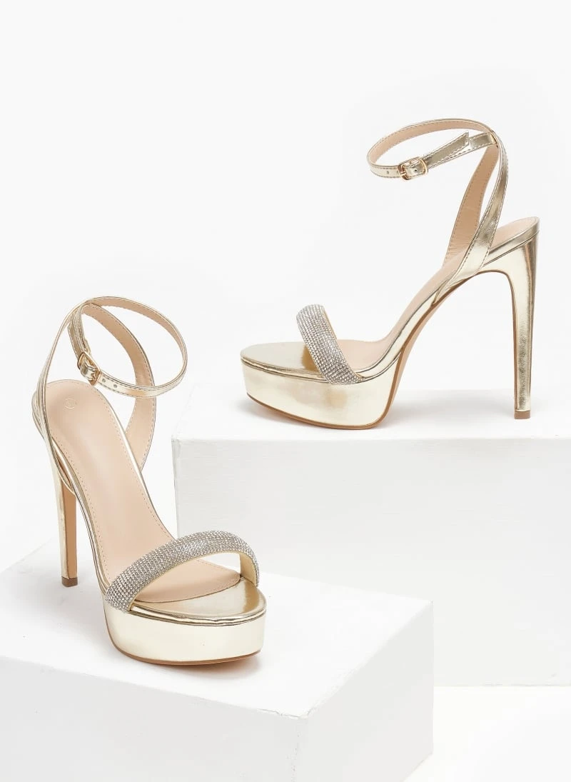 TFP Πέδιλα με στρας και μπαρέτα – Χρυσό