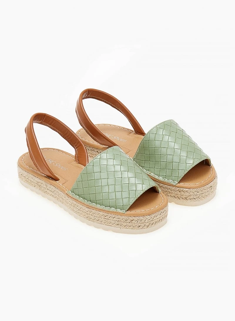 Εσπαντρίγιες με pattern πλεκτό. Έχουν σχοίνινη σόλα. Είναι ανοιχτές με λουράκι στο πίσω μέρος.