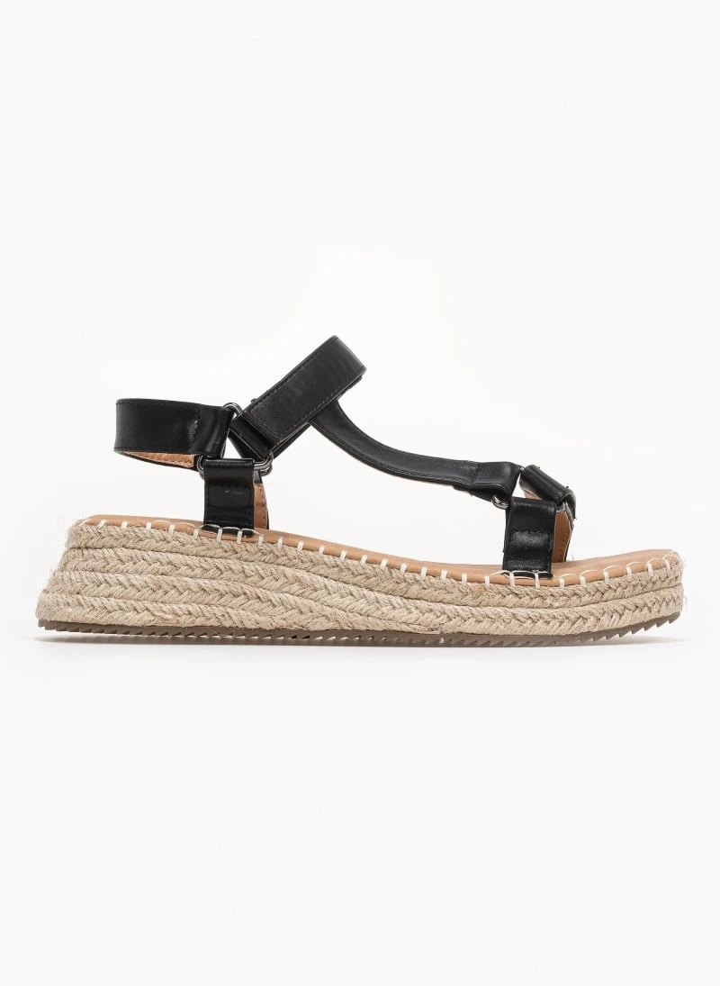 Flatform casual πέδιλα με λουράκι στοπλάι.Η σόλα είναι ντυμένη με σχοινί.