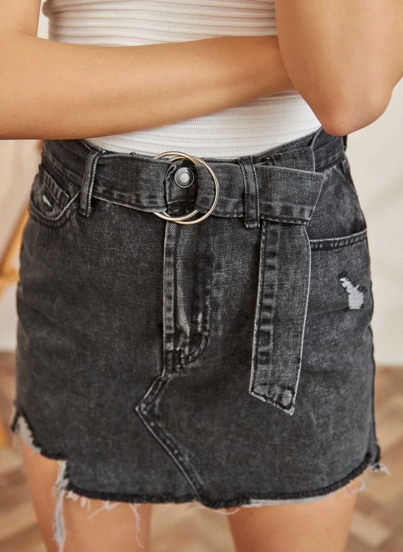 The Fashion Project Φούστα μίνι τζιν με ζώνη – Ανθρακί