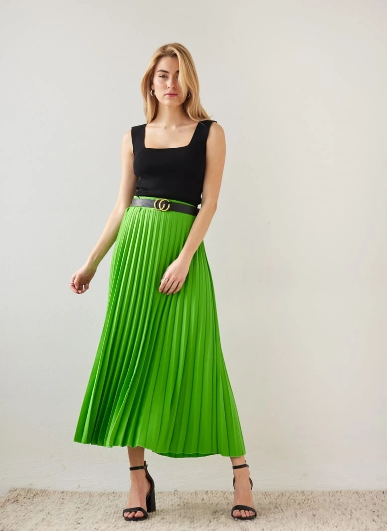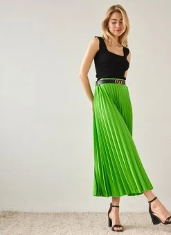 The Fashion Project Φούστα μίντι πλισέ με ζώνη – Πράσινο