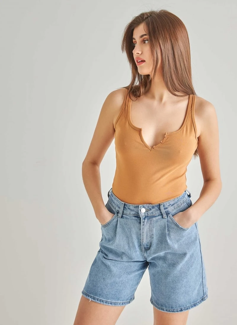 Basic αμάνικο μπλούζα με κουμπάκια στο μπούστο.Εφαρμοστή γραμμή.