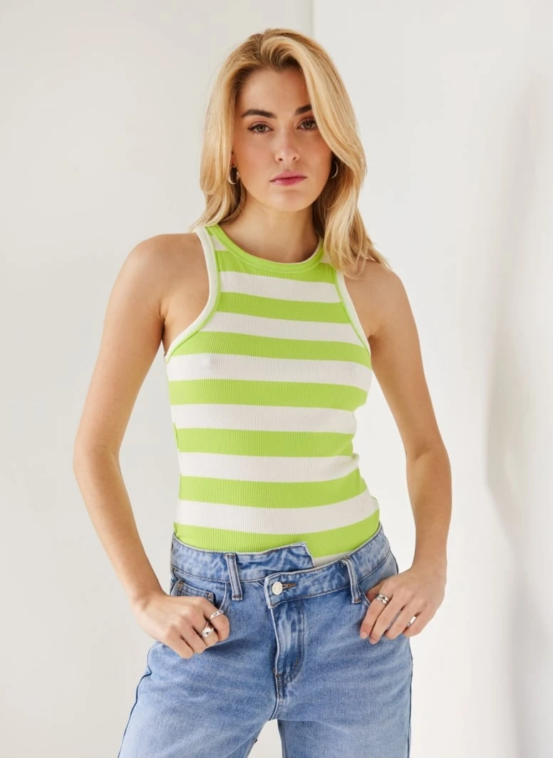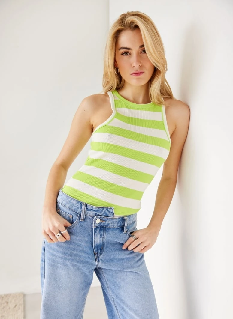 The Fashion Project Μπλούζα ριμπ αμάνικη με ρίγες – Lime