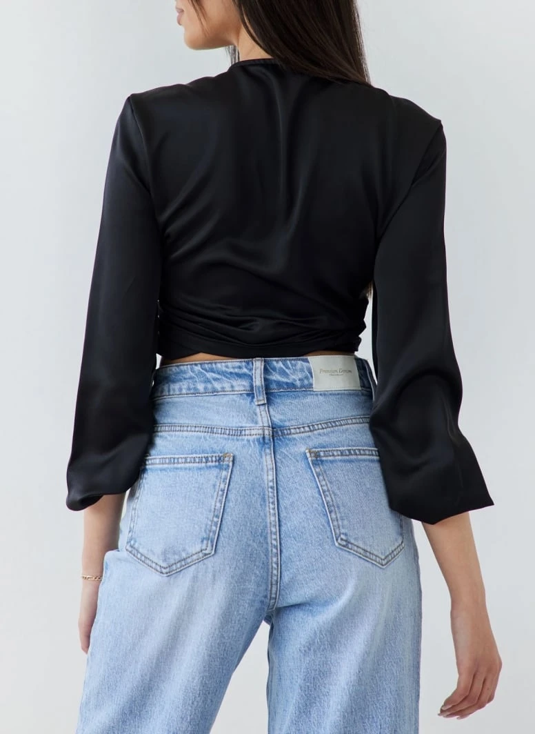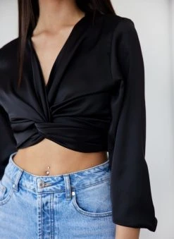The Fashion Project Μπλούζα σατέν με δέσιμο – Μαύρο