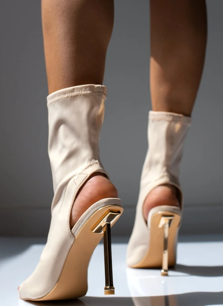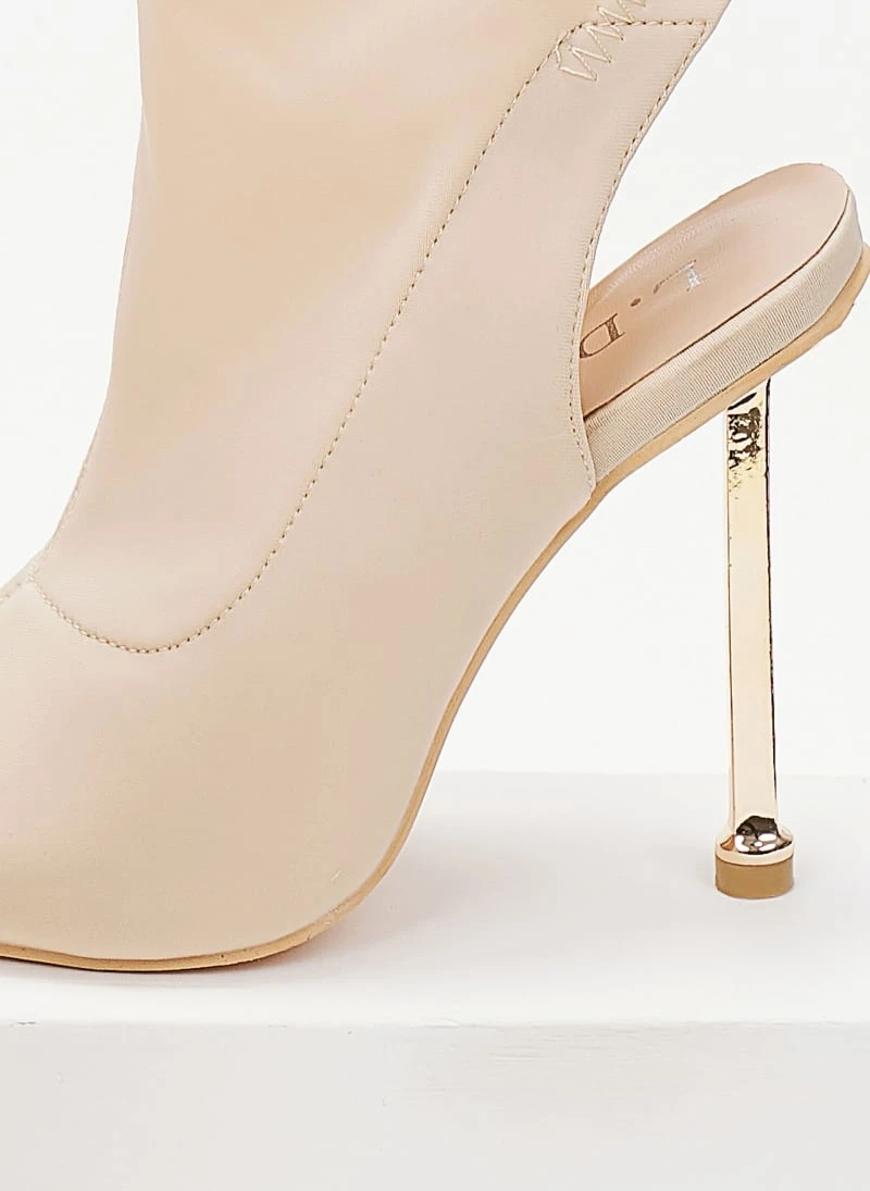 The Fashion Project Μποτάκια κάλτσα με μεταλλική λεπτομέρεια – Μπεζ