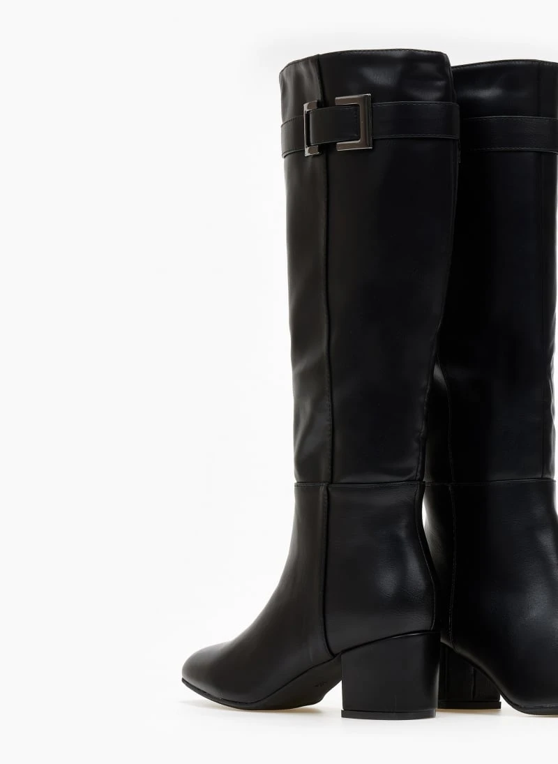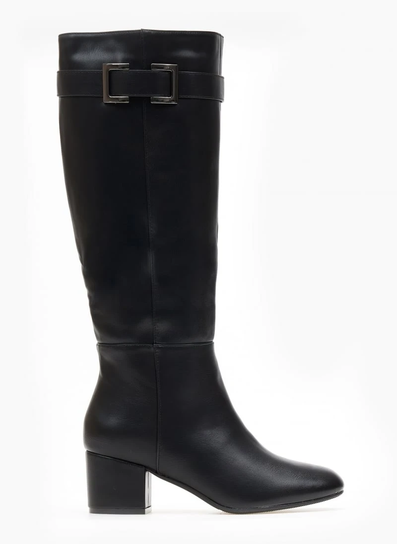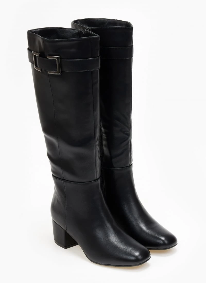 Μπότες casual με ζωνάκι στη γάμπα. Έχουν χαμηλό τετράγωνο τακούνι.