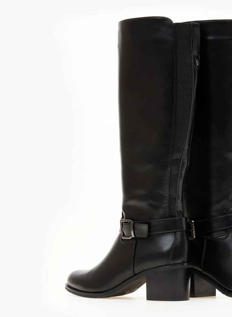 Μπ΄ποτες casual με χαμηλό τετράγωνο τακούνι. Έχουν ελατσικό τμήμα στο πίσω μέρος για καλύτερη εφαρμογή. Διακοσμητικό αφαιρούμενο ζωνάκι με μεταλλική αγκράφα. Στρογγυλή γραμμή.