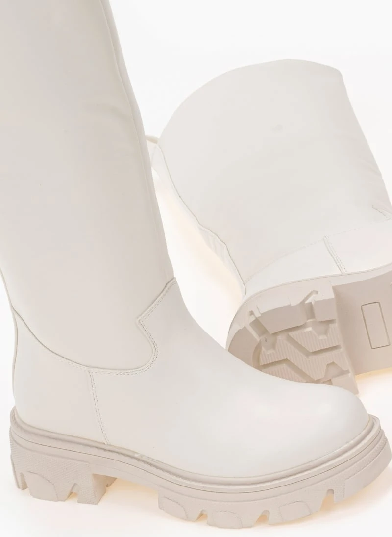 The Fashion Project Μπότες Chunky χωρίς φερμουάρ – Λευκό