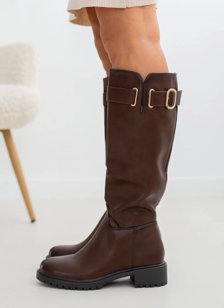 The Fashion Project Μπότες φλατ με ζωνάκι – Καφέ