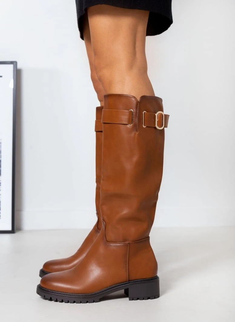 The Fashion Project Μπότες φλατ με ζωνάκι – Ταμπά