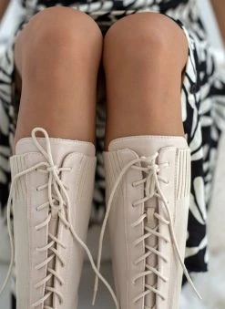 The Fashion Project Μπότες κάλτσα με κορδόνια – Μπεζ