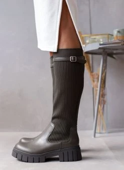 The Fashion Project Μπότες κάλτσα με ζωνάκι – Λαδί