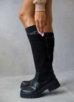 The Fashion Project Μπότες κάλτσα με ζωνάκι – Μαύρο
