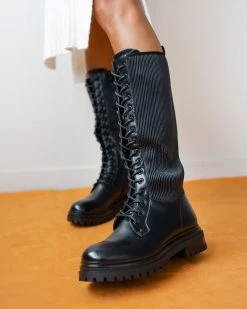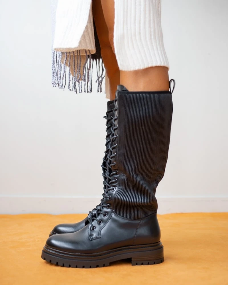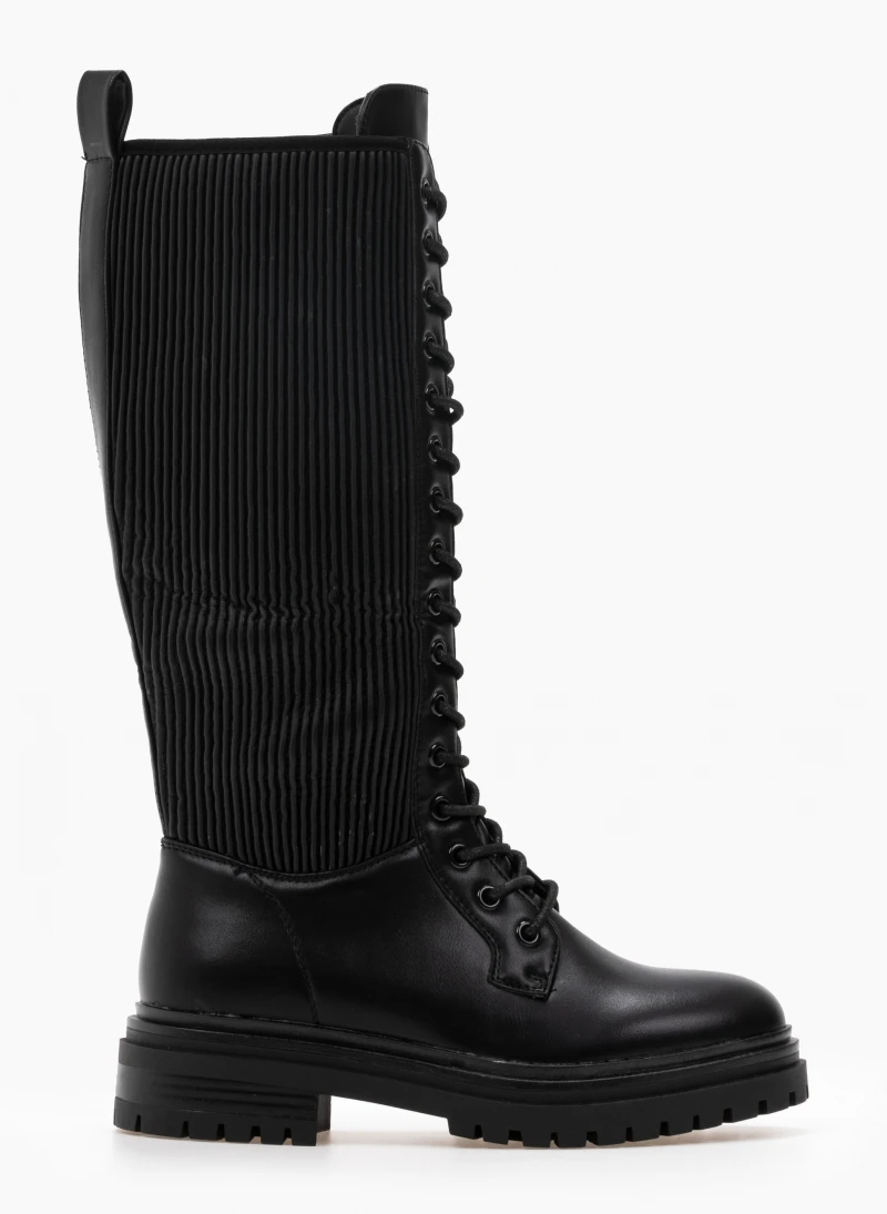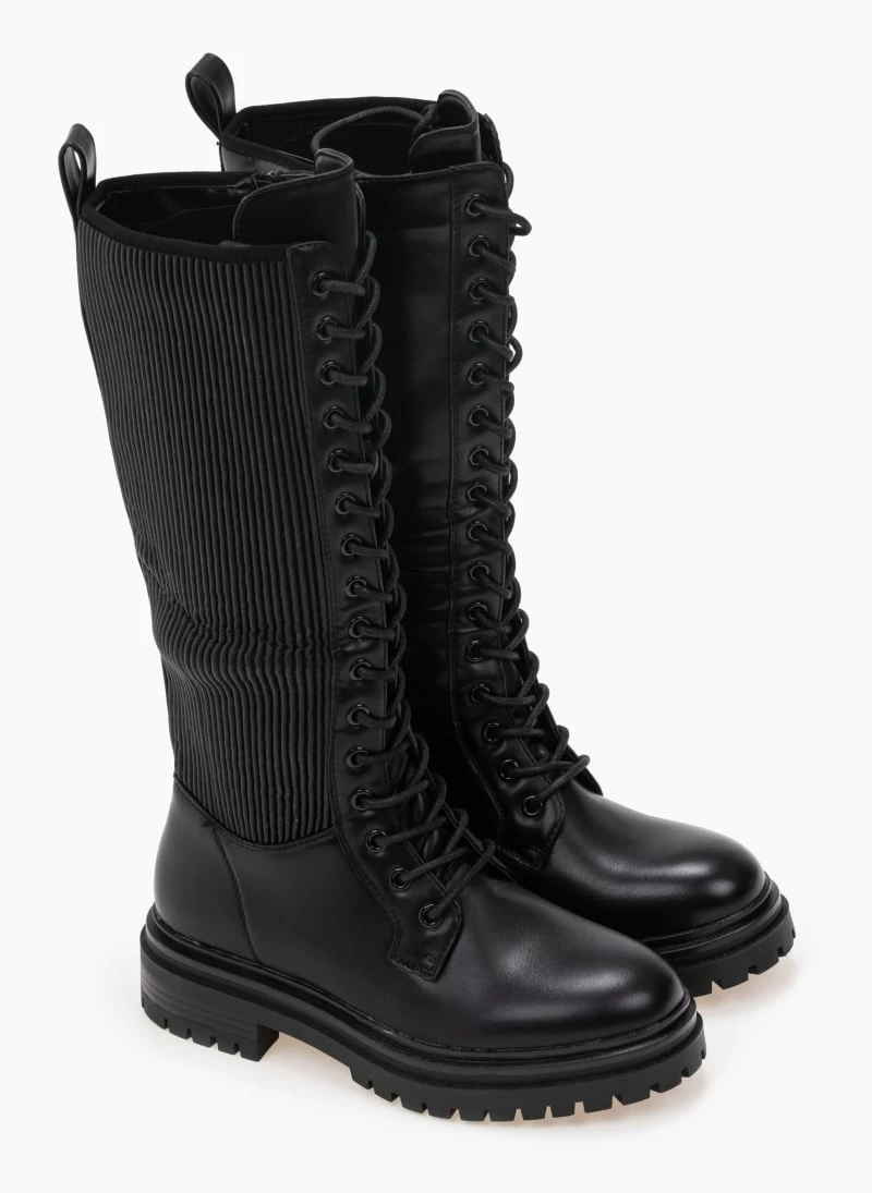 The Fashion Project Μπότες με κορδόνια και ελαστική γάμπα – Μαύρο