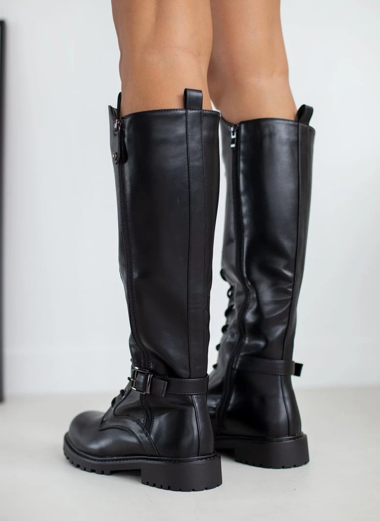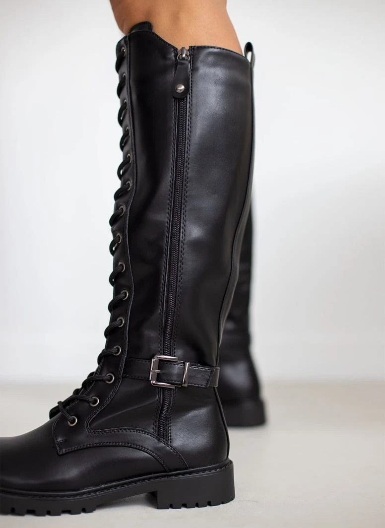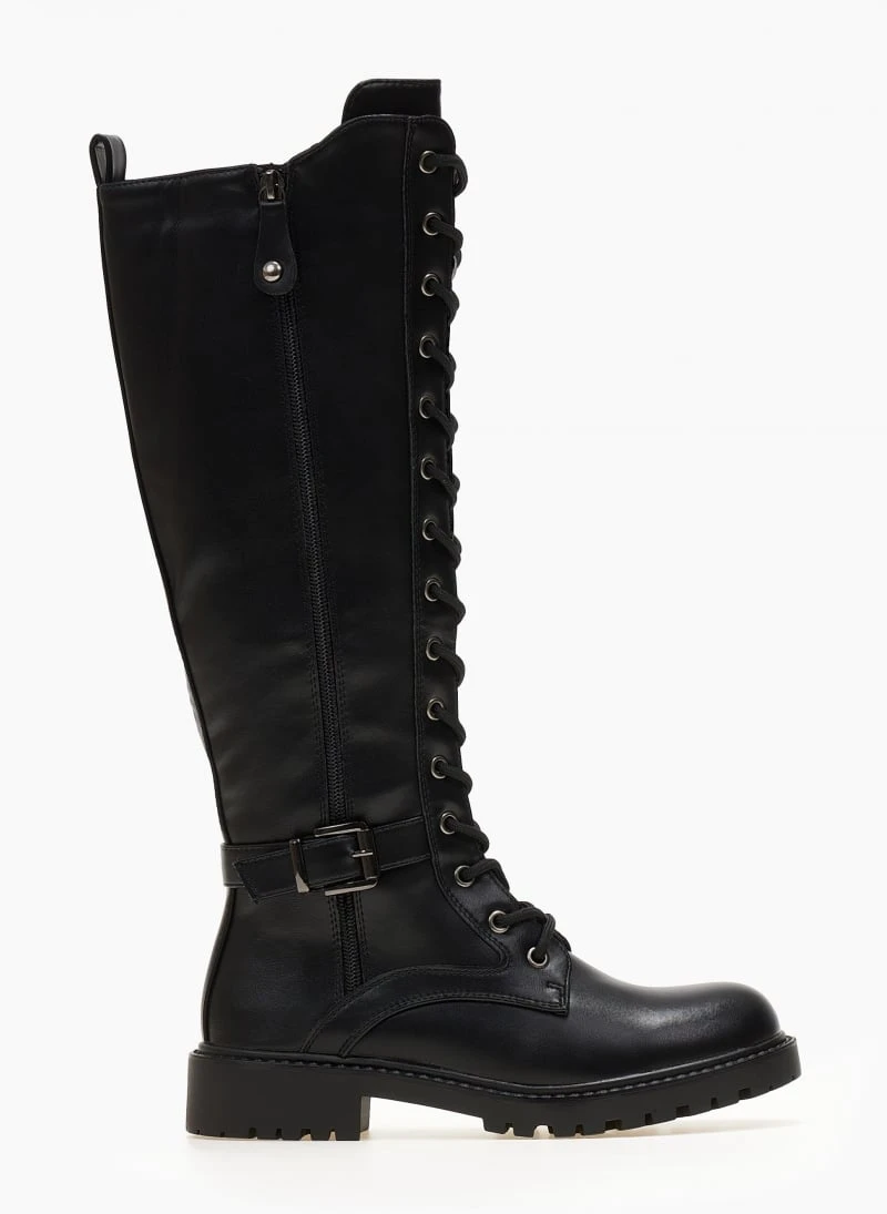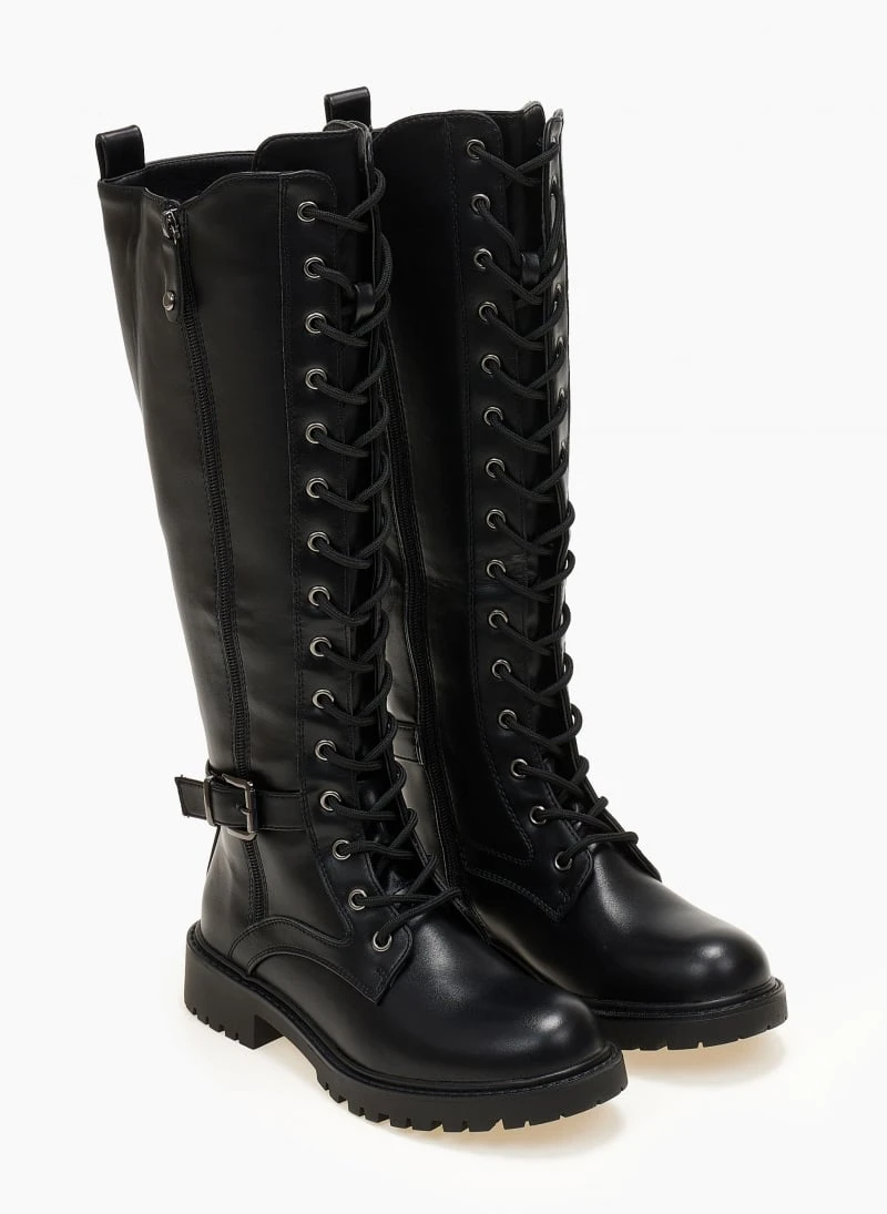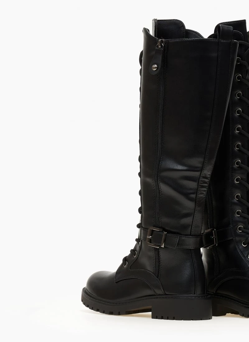 The Fashion Project Μπότες με κορδόνια και ζωνάκι – Μαύρο