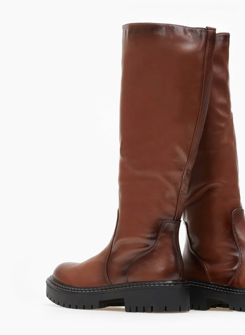 Μπότες σε στρογγυλή γραμμή. Έχουν ελαστικό τμήμα για καλύτερη εφαρμογή. Τρακτερωτή σόλα με εξωτερικές ραφές.