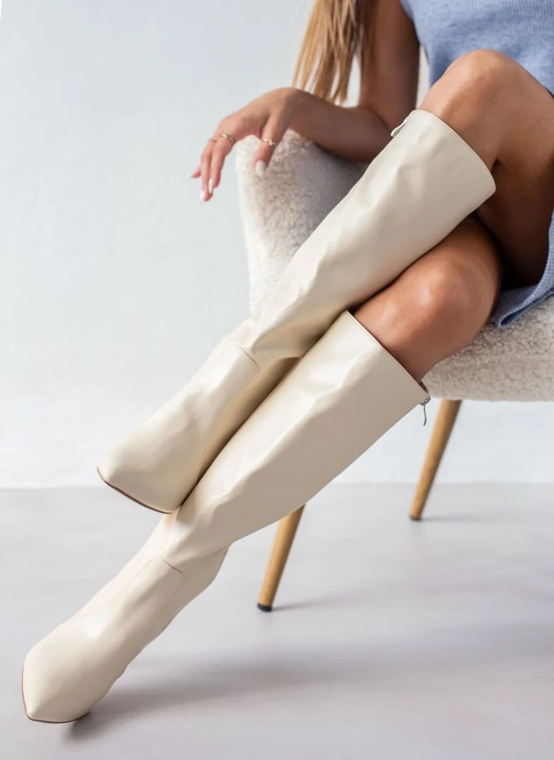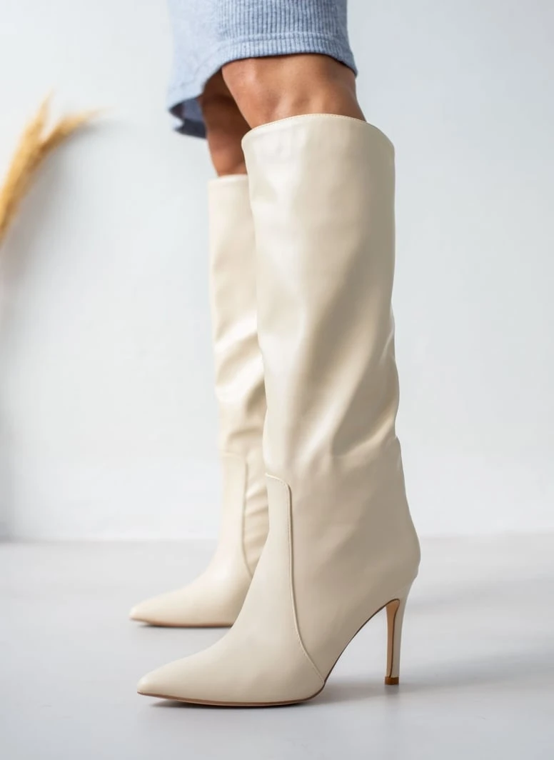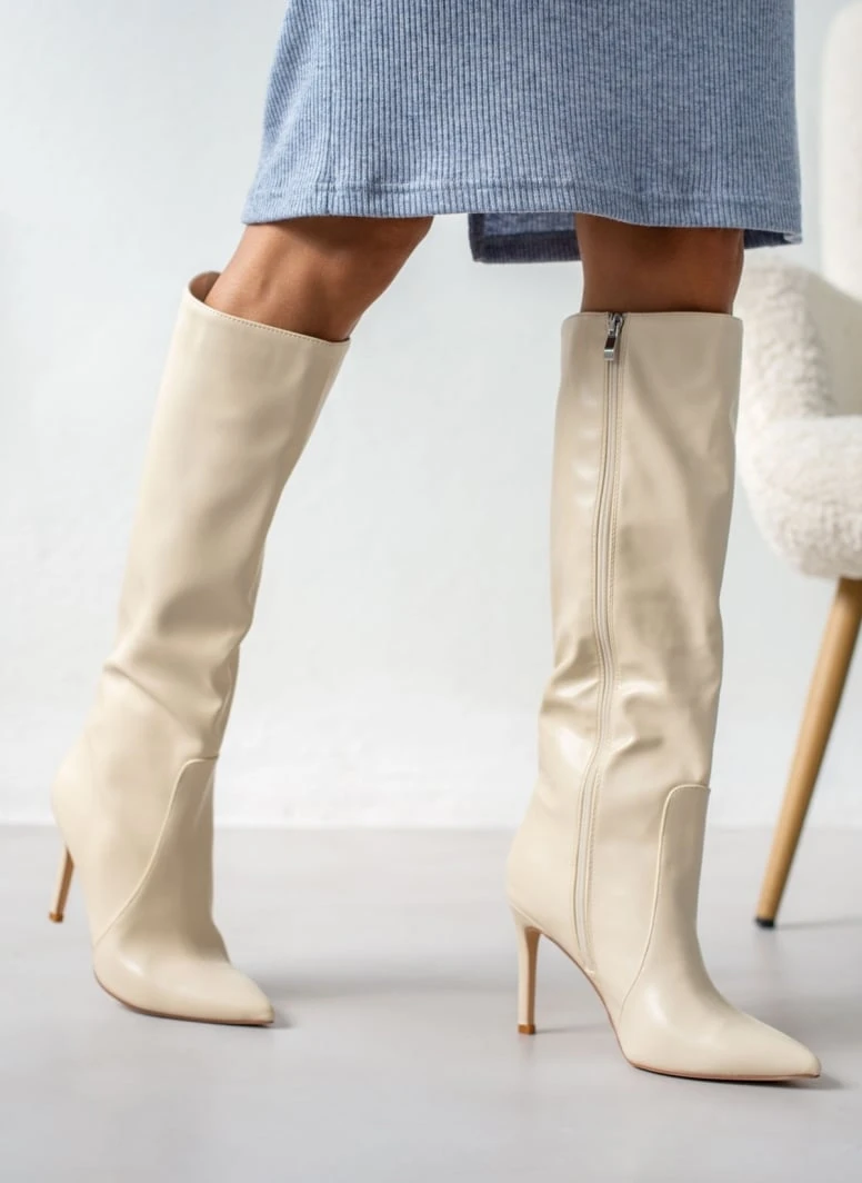 The Fashion Project Μπότες μυτερές με λεπτό τακούνι – Μπεζ